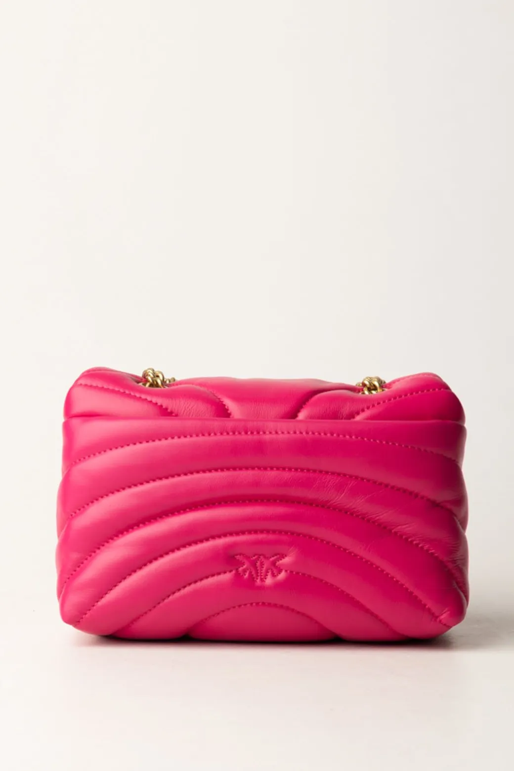 Questa borsa Pinko cattura immediatamente l’attenzione con il suo design accattivante. La pelle imbottita forma un motivo farfalla che parte dal centro, creando un effetto tridimensionale e super chic. Il dettaglio dorato della fibbia Love Birds, simbolo del brand, conferisce un tocco lucente che completa l’allure romantico rendendola ideale per chi cerca un look sofisticato.