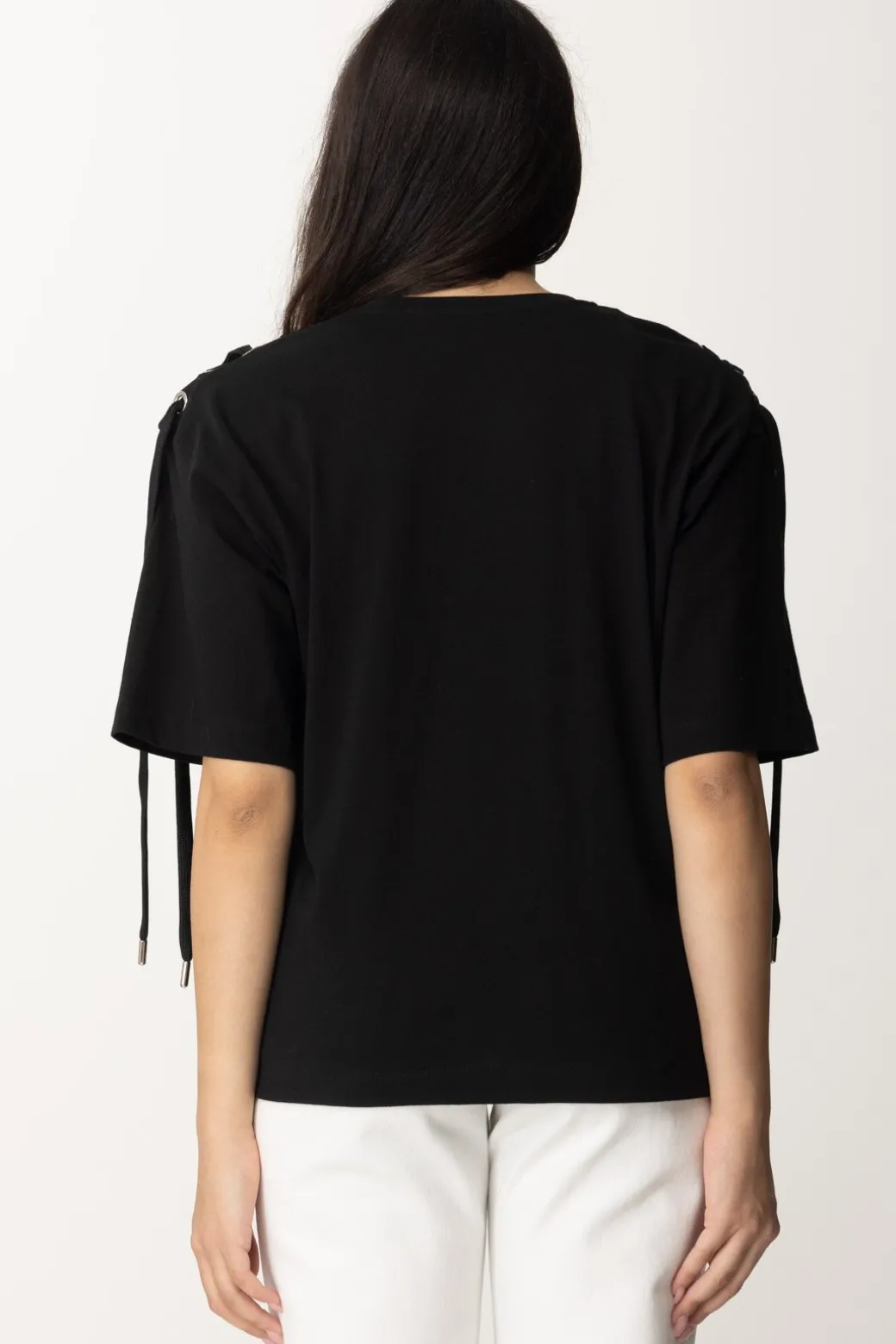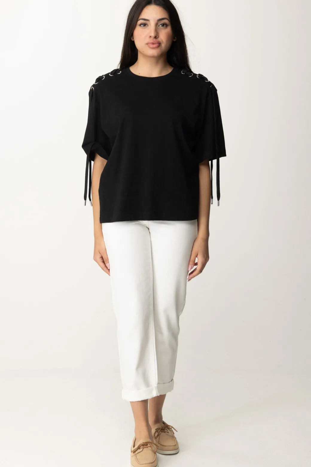 T-shirt Pinko smanicata impreziosita ai lati da un dettaglio di lacci a incrocio, perfetta per un look sportivo e alla moda che non passa inosservato.