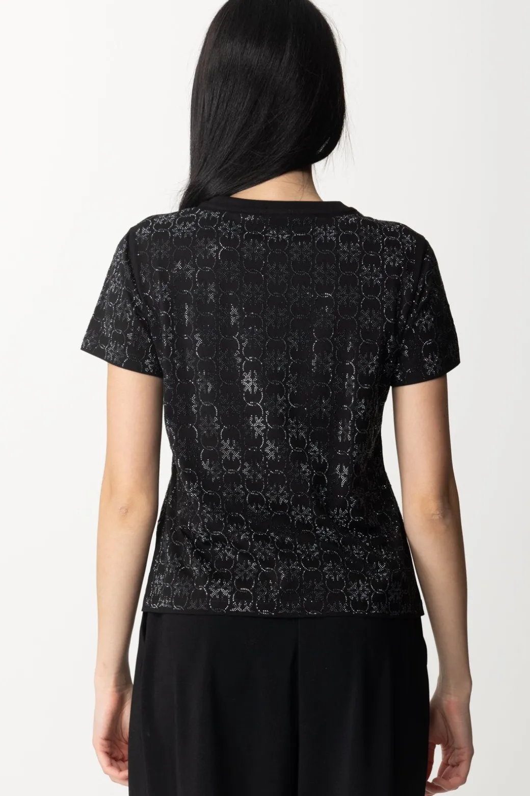 Metti da parte la sobrietà e sfoggia questa t-shirt Pinko con il suo pattern logo Love birds ricamato in strass fronte e retro, che ti farà scintillare il qualsiasi momento della giornata! Gioca con gli abbinamenti per creare outfit super glam: non mancheranno i bottom giusti proprio in questa collezione.