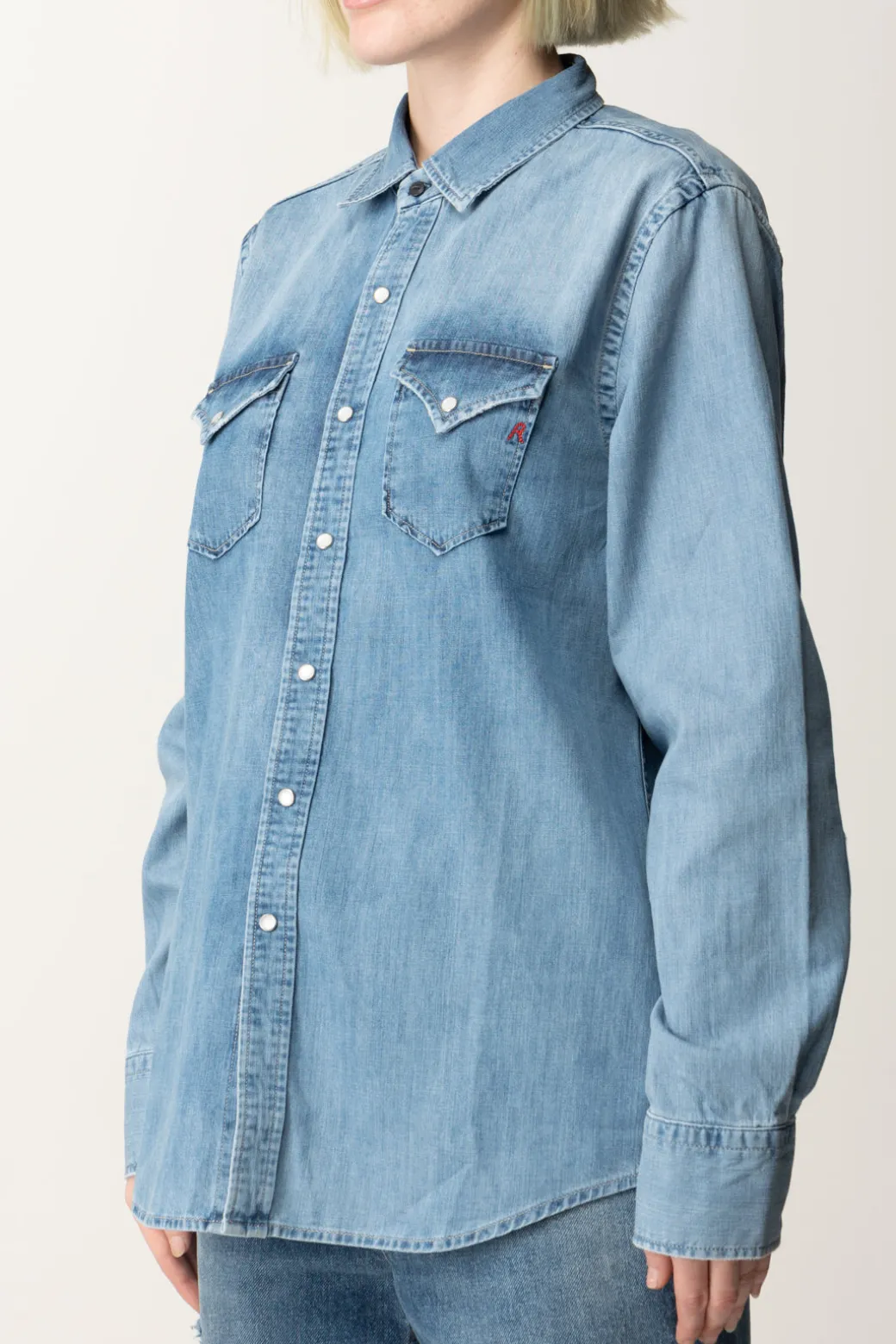 Camicia in jeans Replay super casual e versatile, caratterizzata da trattamento stone wash con spazzolatura bleach. Maniche lunghe e taglio dritto e completata dai classici taschini sul petto, ogni dettaglio concorre a rendere questo capo un vero e proprio evergreen.