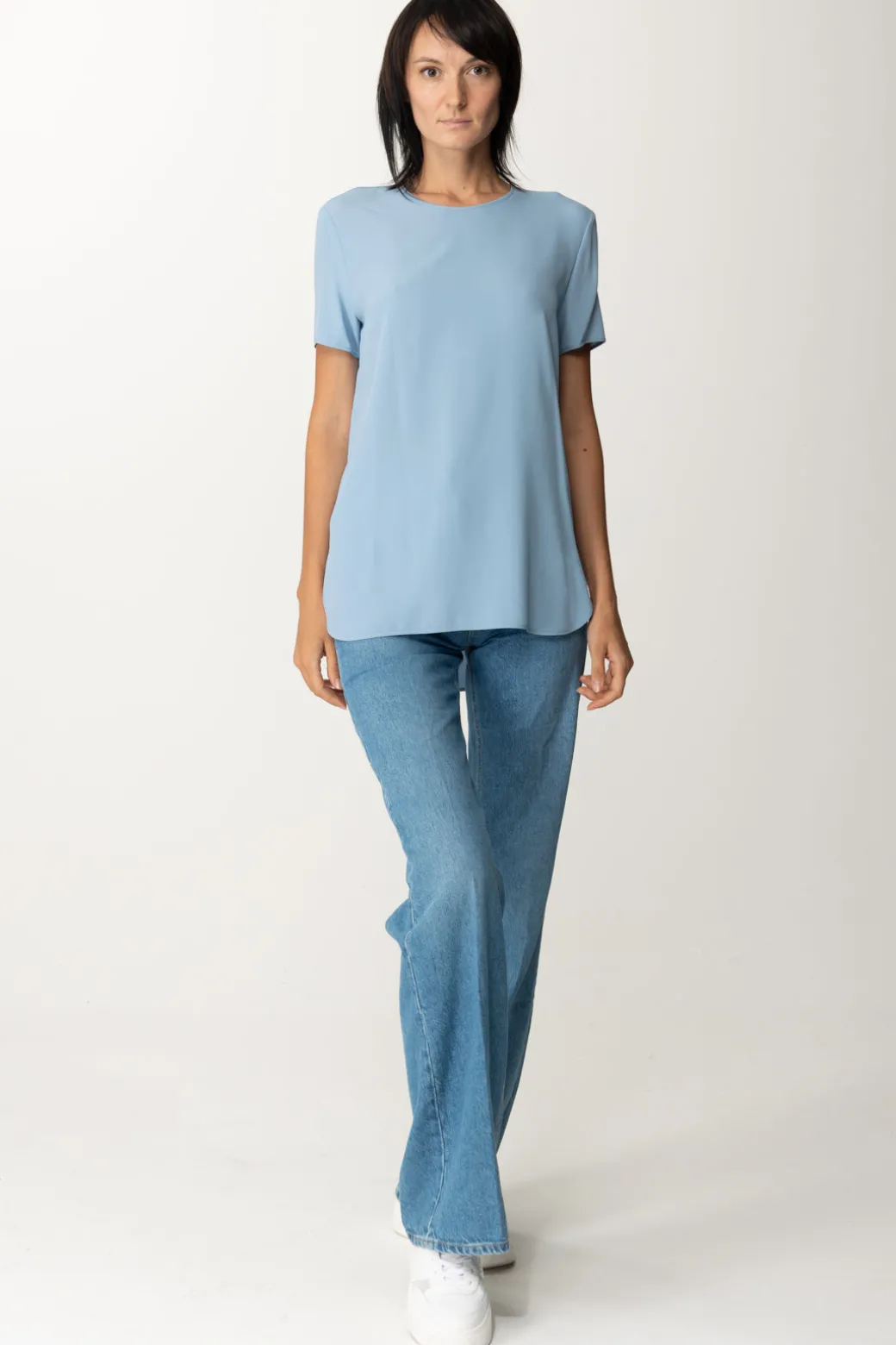 Eleganza che abbraccia la comodità! T-shirt Simona Corsellini realizzata in raffinata seta, con un fit morbido e leggero, per un connubio unico, da indossare comodamente sotto una giacca o da sfoggiare da sola!