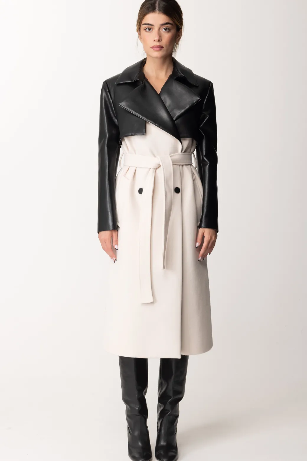 Simona Corsellini Trench Ecopelle Bicolore DoppiopettoWHITE CLOUD/NERO