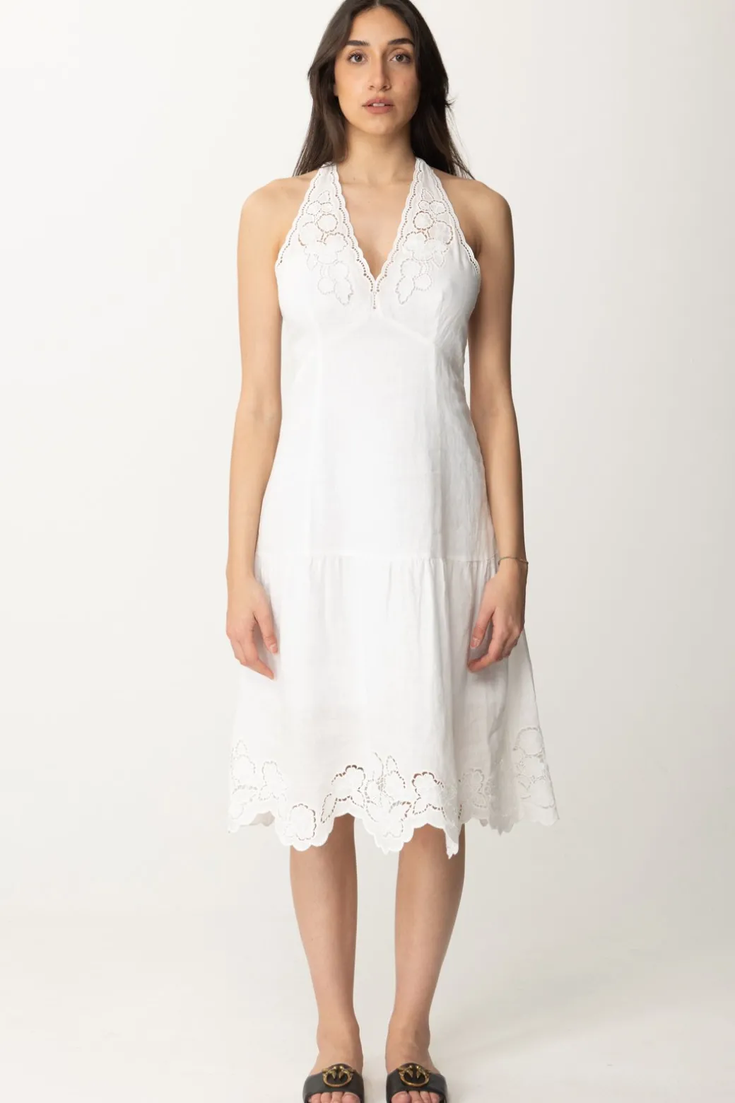 Ci sono tessuti, come il lino, che sono la sintesi perfetta di un mood e di una stagione: effetto che si moltiplica se combinato con un giusto design, come per questo abito Twinset! Smanicato e longuette, il fondo e la scollatura sono abbelliti da un in ricamo floreale traforato che allggerisce ancora di più la tua mise, già ariosa grazie alla balza sulla gonna che crea una leggera svasatura. Con tacchi, con ciabattine, con zeppe, come vuoi tu: l’importante è che tu lo abbia e te lo goda al meglio!