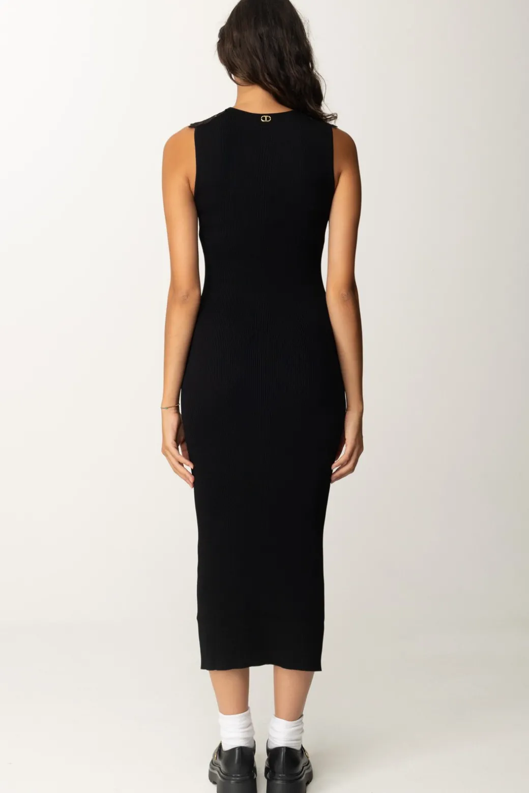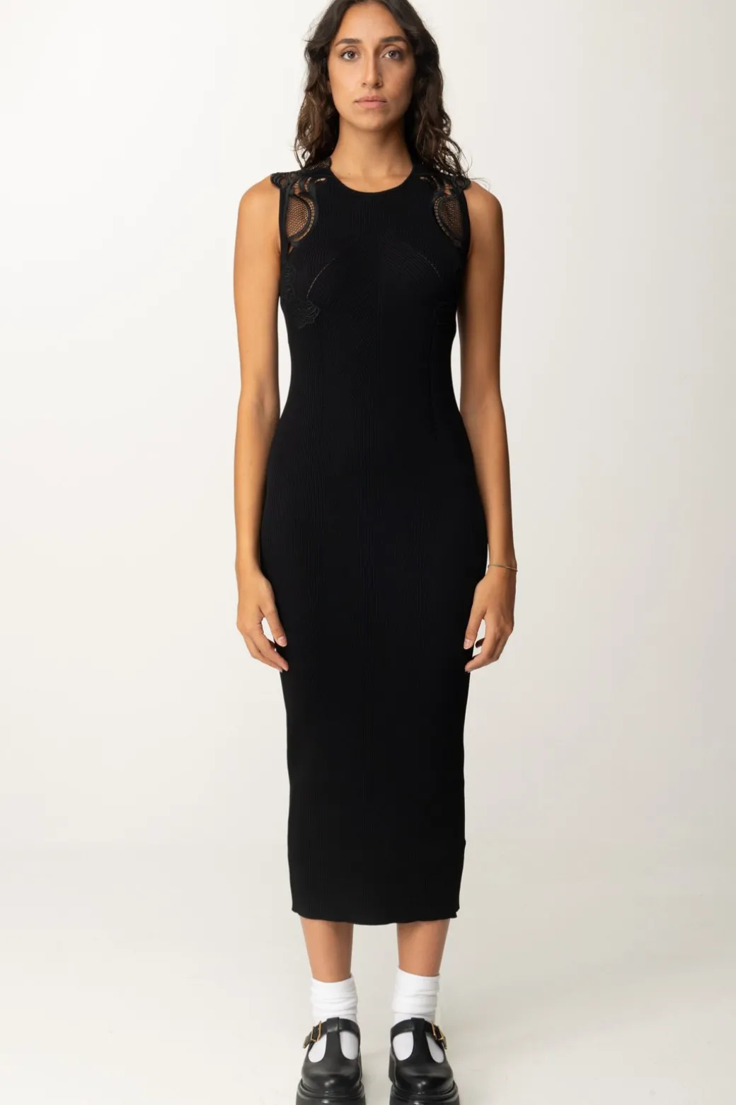 Raffinato e femminile, un abito Twinset che ti conquisterà a primo sguardo. Design lungo realizzato in maglia di viscosa e impreziosito sulle spalle da intarsi di pizzo macramè. La line fitted conferisce una silhouette elegante che completa l’abito con un fascino unico.