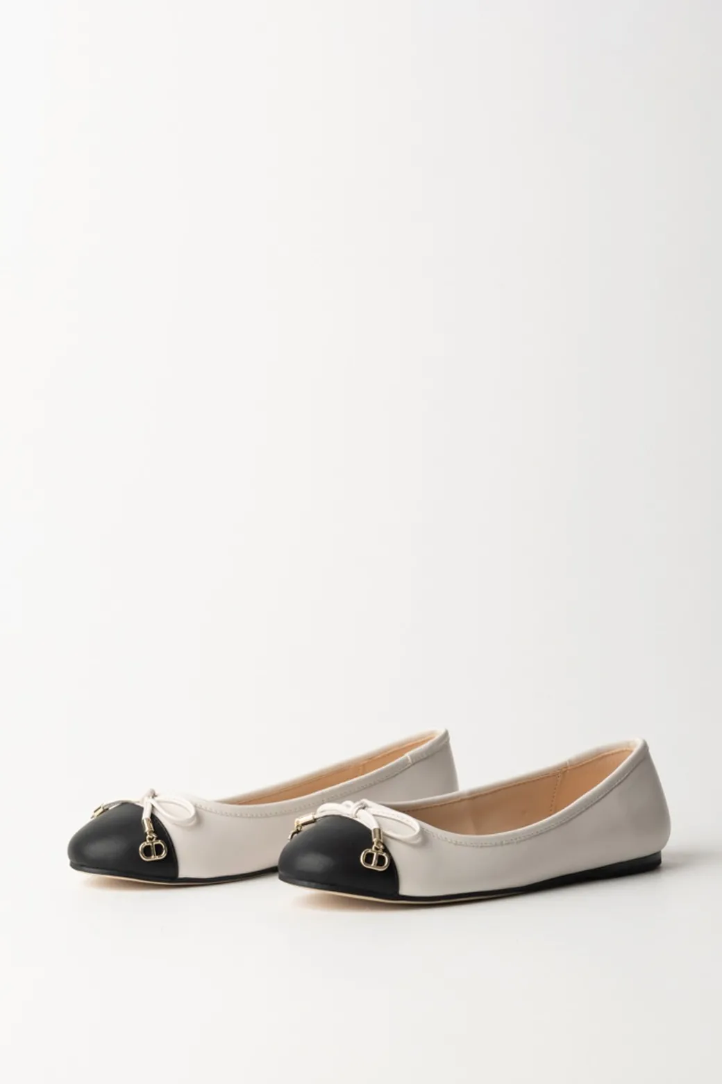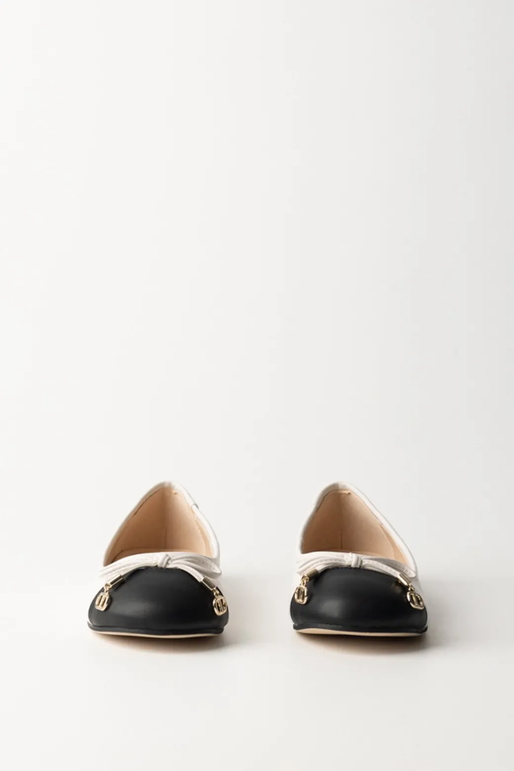 Aggiungi il colore ai tuoi outfit… in punta di piedi: ballerine Twinset con punta colorata e fiocchetto con finalini logati, perfetta da indossare per i tuoi outfit più spensierati e vivere in comfort le tue giornate off-duty.