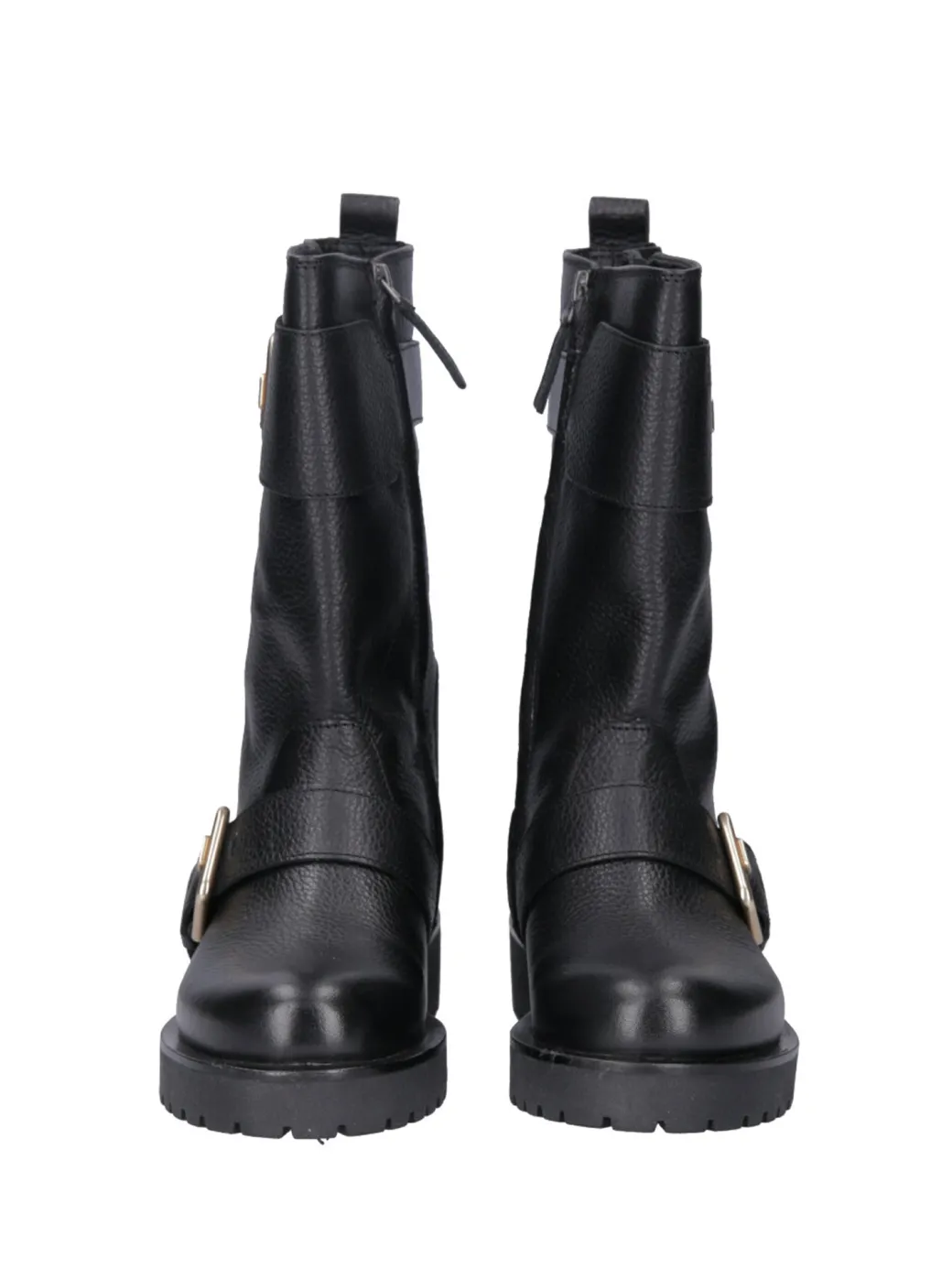 Stivaletti Twin-Set in stile biker per creare tantissimi abbinamenti a prova di pioggia! Semplici, in pelle martellata, caratterizzati dalla presenza di una dobbia fibbia sul lato, gioca di contrasti abbinandoli ad abiti leggeri e ariosi, o crea outfit di carattere con capi in pelle o in denim.Chiusura con zipAltezza: 3,5Pelle
