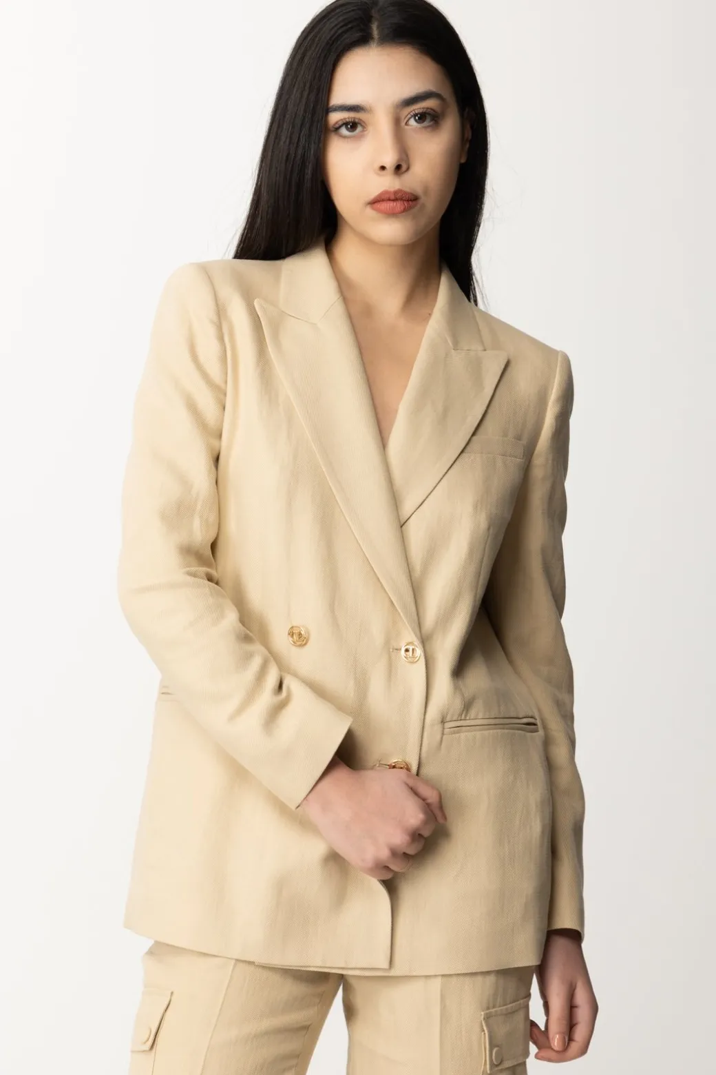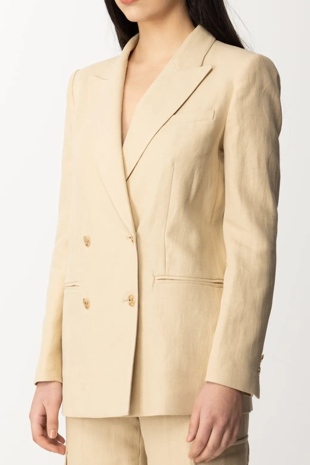 Non avrai bisogno di una giusta occasione per indossare questa giacca Twinset in saia di cotone e lino, perché ogni occasione sarà quella giusta! Linne pulite e tinta calda, ti accompagna in primavera fino al primo fresco d’estate, con il tocco chic della chiusura doppiopetto con bottoni logati. Un foulard al collo sarà l’ultimo tocco ladylike di cui avrai bisogno per rifinire il tuo look.