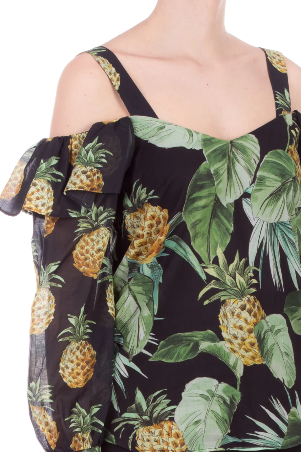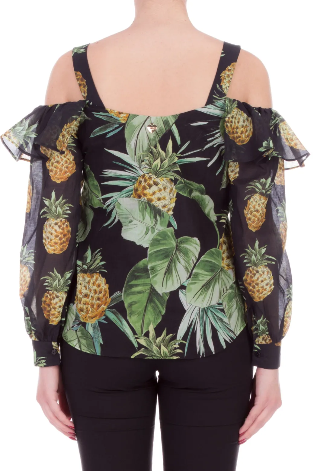Perchè prenderti troppo sul serio quando puoi sfoggiare una stampa divertente come quella scelta per quesa blusa Twin-Set? E senza rinunciare alla tua femminilità: tanto la scollatura poggiata sul seno quanto il cut-out alle spalle aggiungono quel tocco di sensualità, insieme ai volant applicati sulle maniche lunghe. Jeans, shorts o pantaloni? Fai tu, sta bene con tutto!