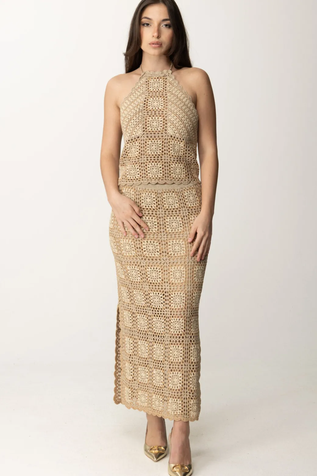 Bello da giorno, bello da sera, belli i due pezzi insieme e belli i due pezzi separati: questo completo top e gonna Twinset ci piace tantissimo! Accomunati dallo stesso pattern realizzato in crochet, il top si caratterizza per l’allacciatura al collo che lascia la schiena scoperta, mentre la gonna è dritta e longuette, aperta da spacchi su entrambi i lati. Divertiti a creare i tuoi look a partire dalle vibes estremamente estive di questo outfit: un acquisto, tantissime possibilità!