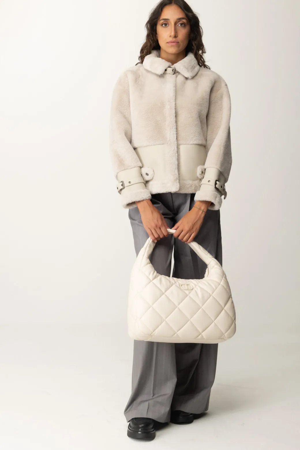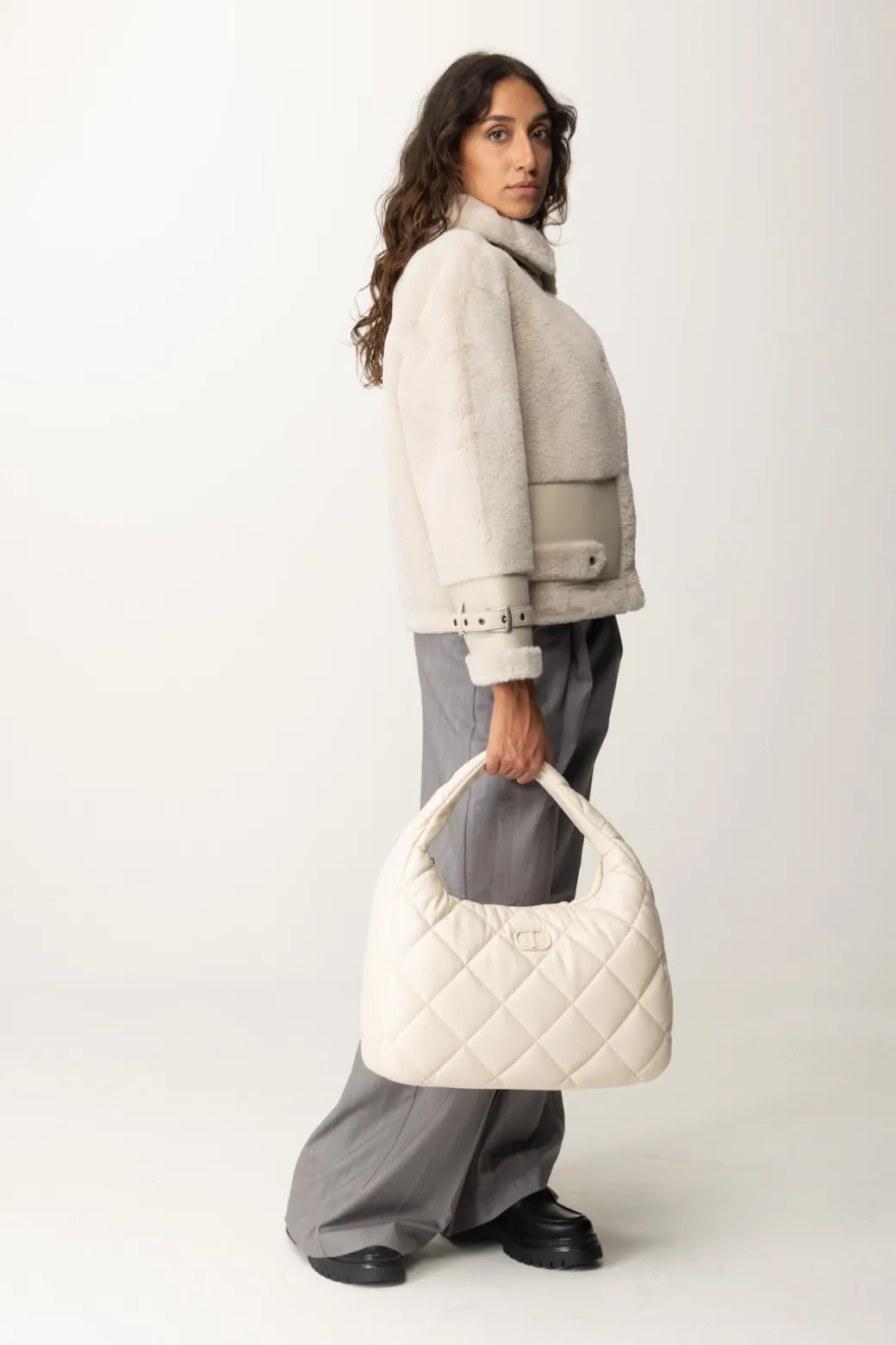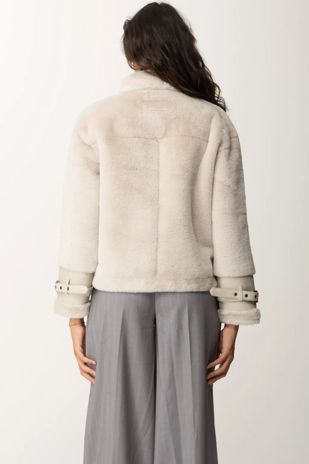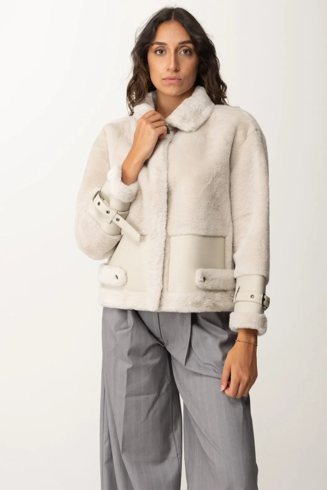 Giacca Twinset con inserti in faux fur e dalla texture effetto shearling e nappa, ha un colletto da chiudere con fibbia, maniche lunghe con spalle scese, cinturini ai polsi e tasche ai fianchi. La linea dritta e gli alamari al fondo con fibbia completano il design. Perfetta con jeans skinny e stivaletti per un look casual ma sofisticato.