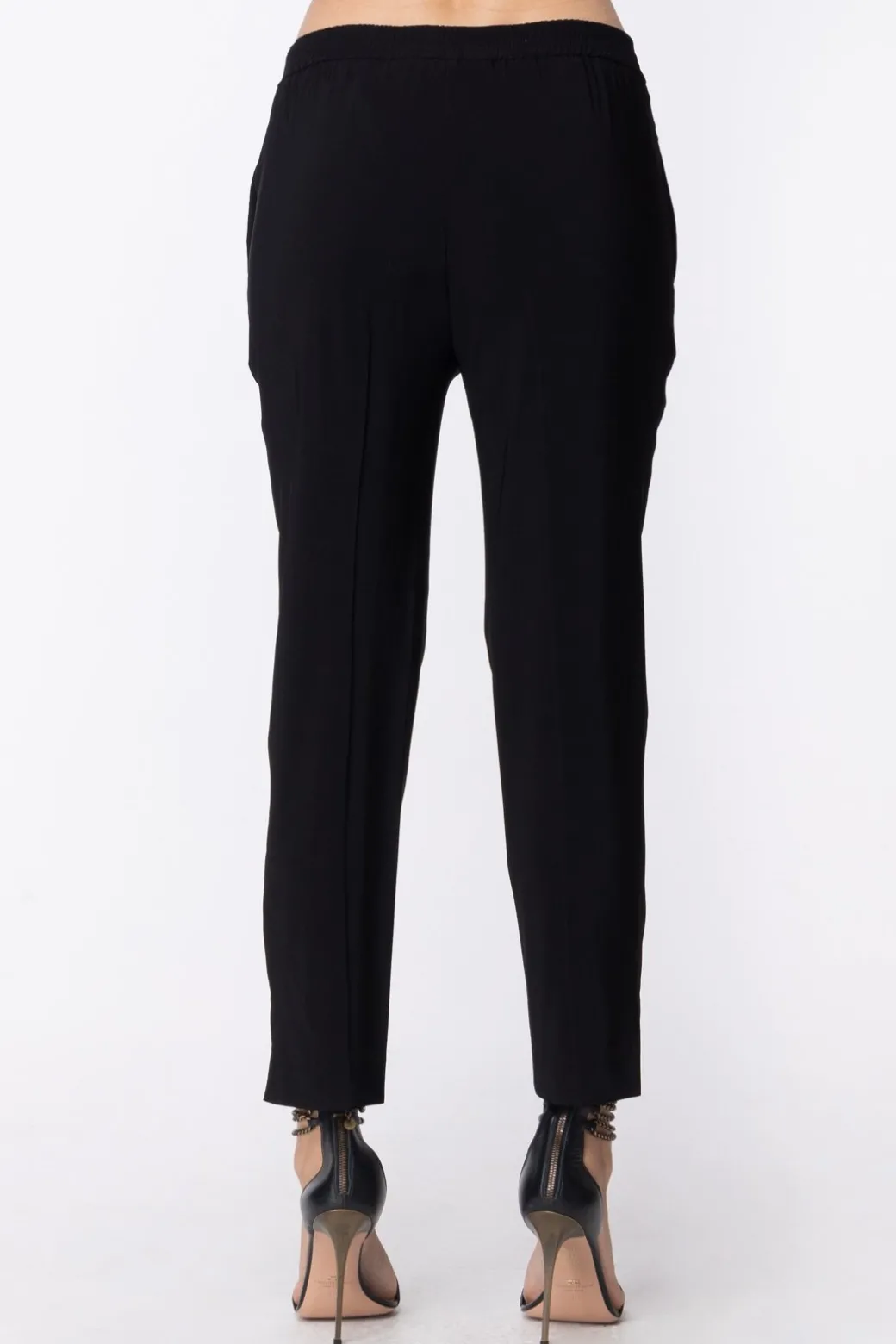 Pantaloni Twin-set in tripla georgette che potrai indossare nei tuoi outfit da mattina a sera, creando sempre combinazioni diverse. Vita arricciata e taglio alla caviglia caratterizzato da spacchetti sul fondo, facile da abbinare a top casual e diversi tipi di calzatura a seconda della tua necessità. Piccolo charm a cuore con logo sul fianco.Vita regular arricciataVestibilità aderenteTaglio alla caviglia