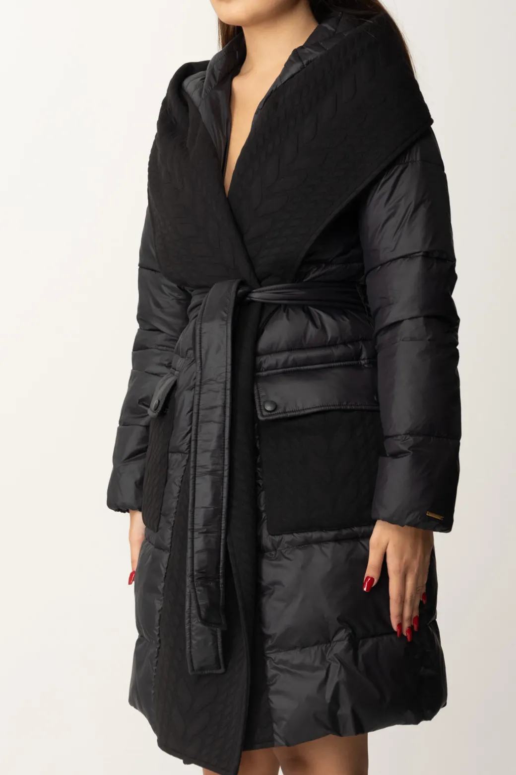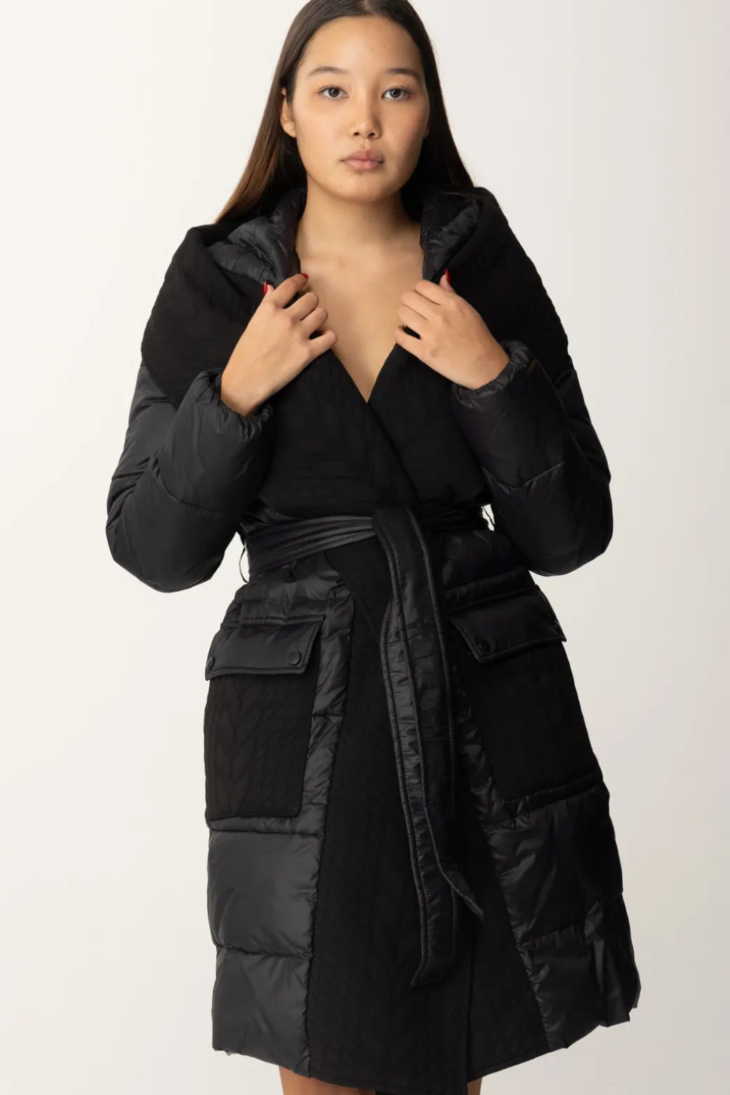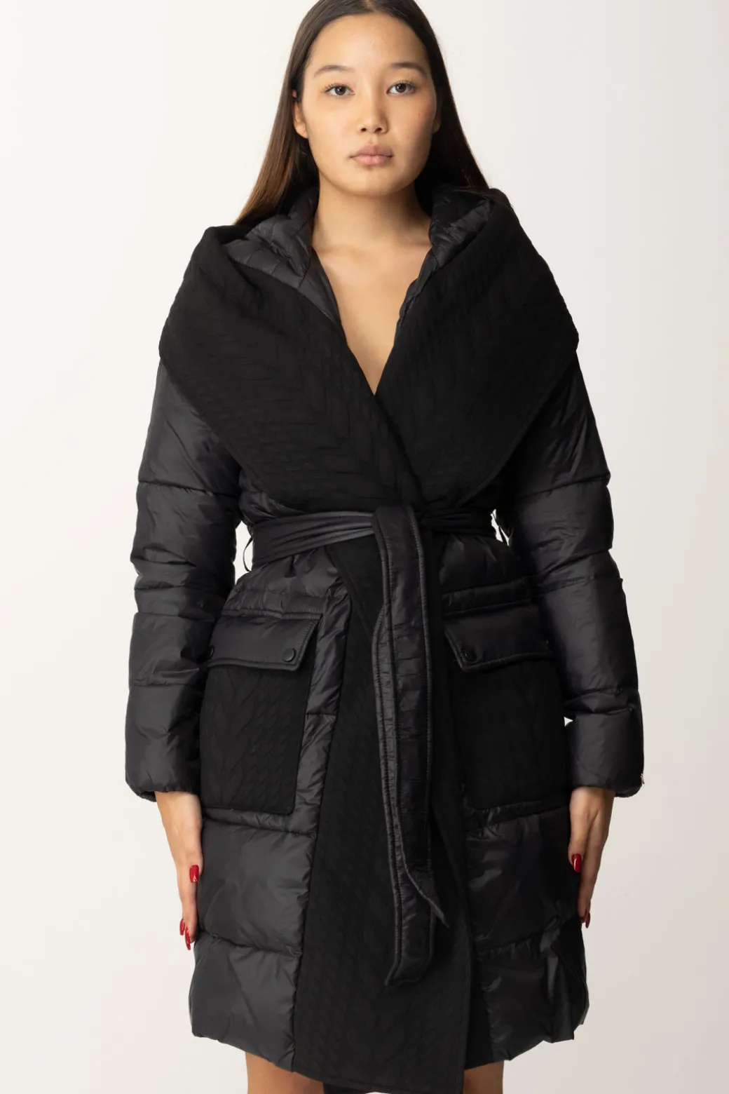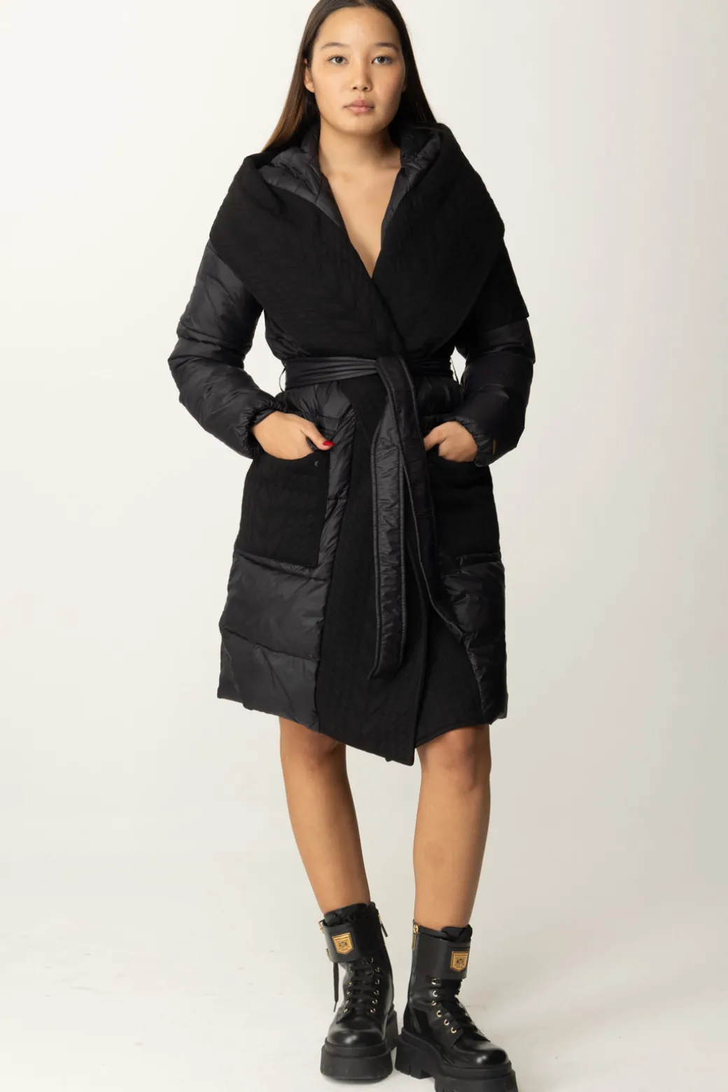 Un Piumino Twinset avvolgente e dallo stile contemporaneo, caratterizzato da una silhouette oversize e una cintura in tessuto che definisce il punto vita. Perfetto per look casual-chic, dona un tocco moderno e sofisticato. Abbinalo a stivali chunky o sneakers alte per un look metropolitano.