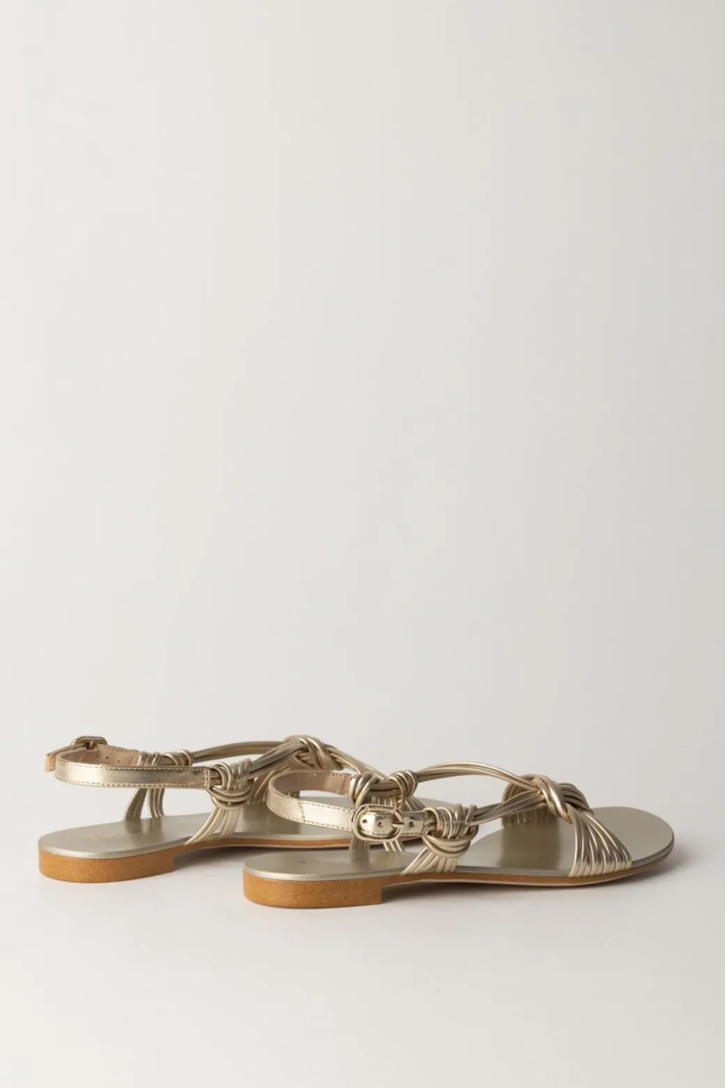 Ancora una calzatura che strizza l’occhio al trend di stagione, senza rinunciare alla comodità: stiamo parlando di questi sandali Twinset effetto laminato, senza tacco, caratterizzati da un motivo a nodi a renderli ancora più interessanti per i tuoi outfit. Sicuramente casual, altrettanto chic: amerai indossarli per tutta l’estate, h24.