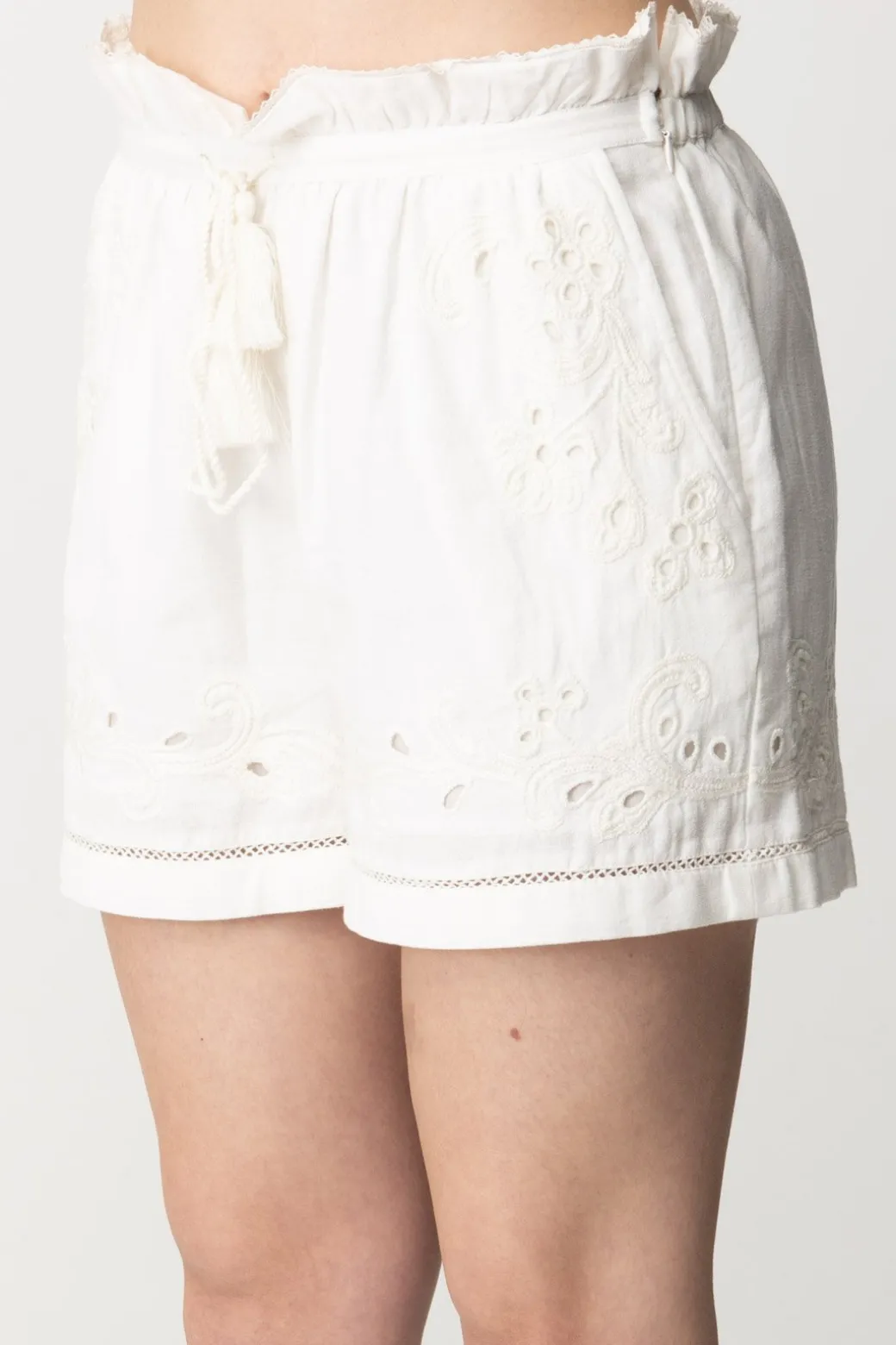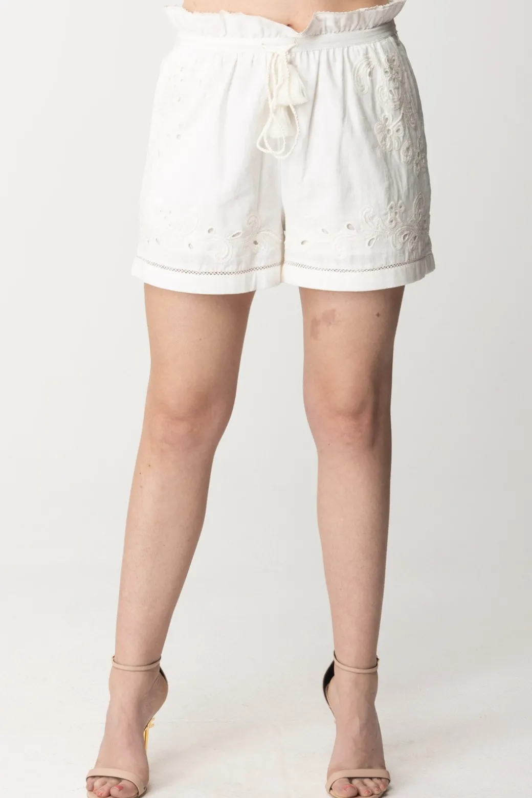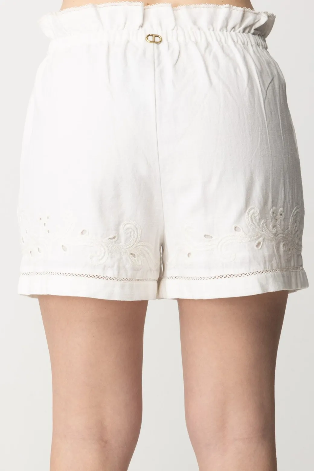 Shorts Twinset raffinato e femminile per l’estate. Realizzati in mussola di cotone e lino, sono decorati da ricami che aggiungono un tocco di eleganza. Con elastico in vita e coulisse con nastri torchon fatti a mano, offrono comfort e stile ineguagliabili. Perfetti per le giornate di sole, sono un’aggiunta chic al tuo guardaroba estivo.