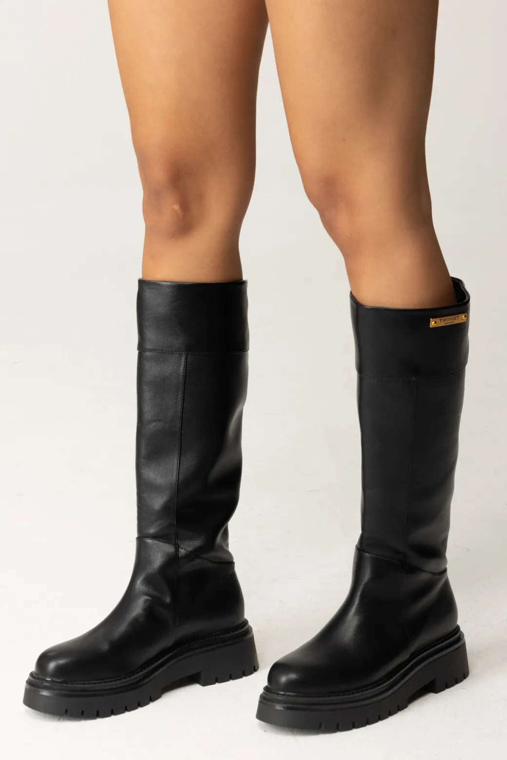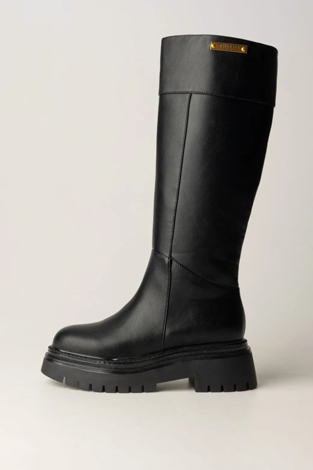Stivali Twinset modello combat con suola chunky e design grintoso, perfetti per chi cerca un look audace e contemporaneo. Versatili e ideali per abbinamenti casual con jeans skinny o gonne mini per un mix di femminilità e forza.