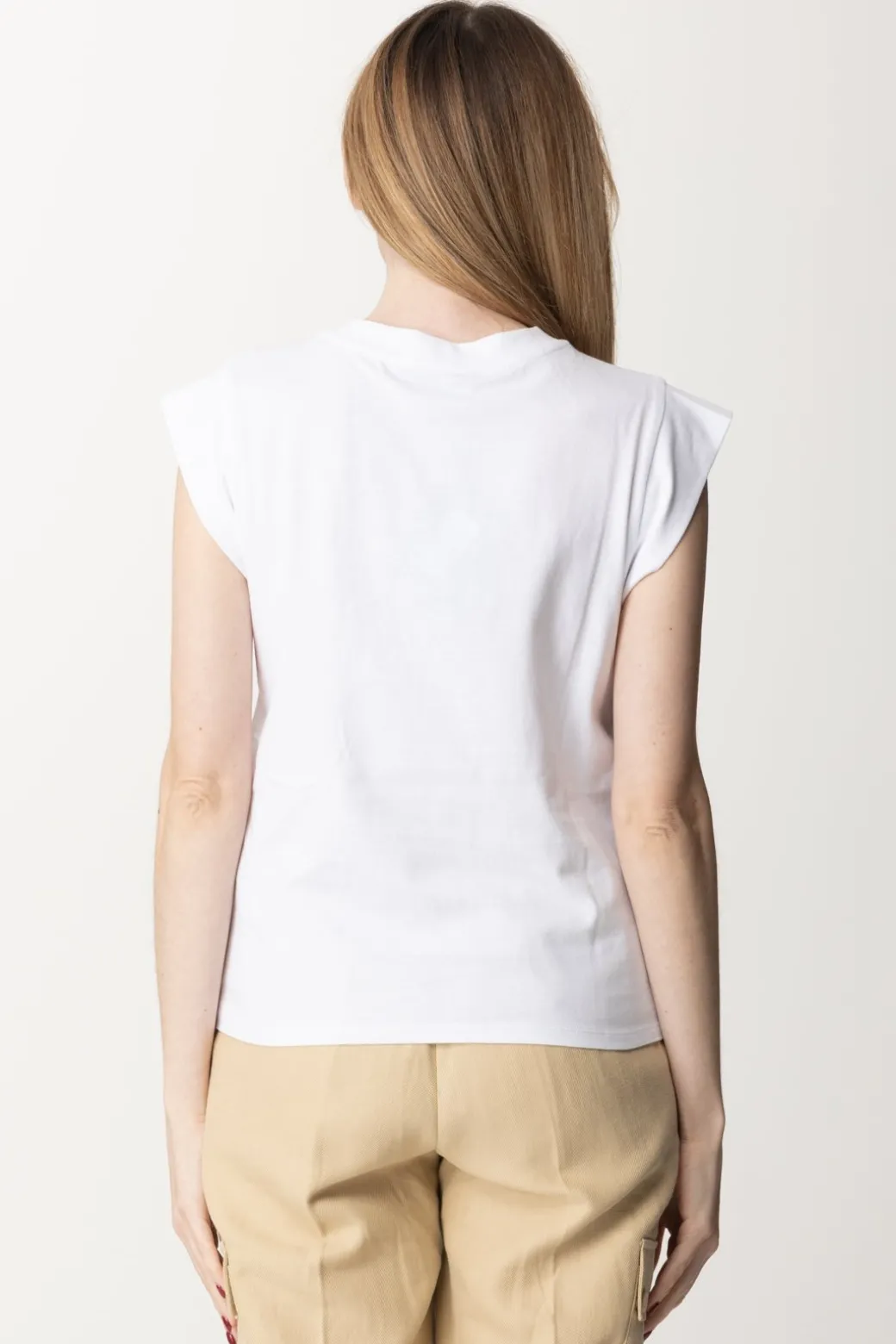 Fresca e versatile T-shirt Twinset che potrai indossare per tutta la bella stagione. Il logo sul petto è una dichiaraizone di stile ed un delicato ornamento al tempo stesso: sfoggialo anche sotto blazer e cardigan creand outfit passe-par-tout giocando con tutte le possibilità di questo capo. Scollo girocollo e maniche ad aletta in stile kimono.