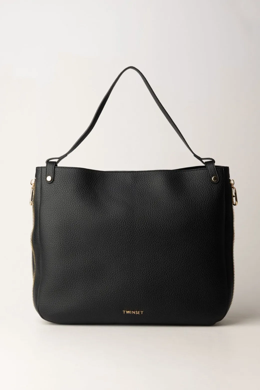 Tote bag Twinset spaziosa e moderna, a renderla ancora più cool ci pensa il dettaglio zip tutto intorno con charm Oval T che ti permette di aumentare la sua capienza mentre aggiunge un tocco di luce. Perfetta per un look da ufficio, abbinala a un tailleur pantalone e mocassini.