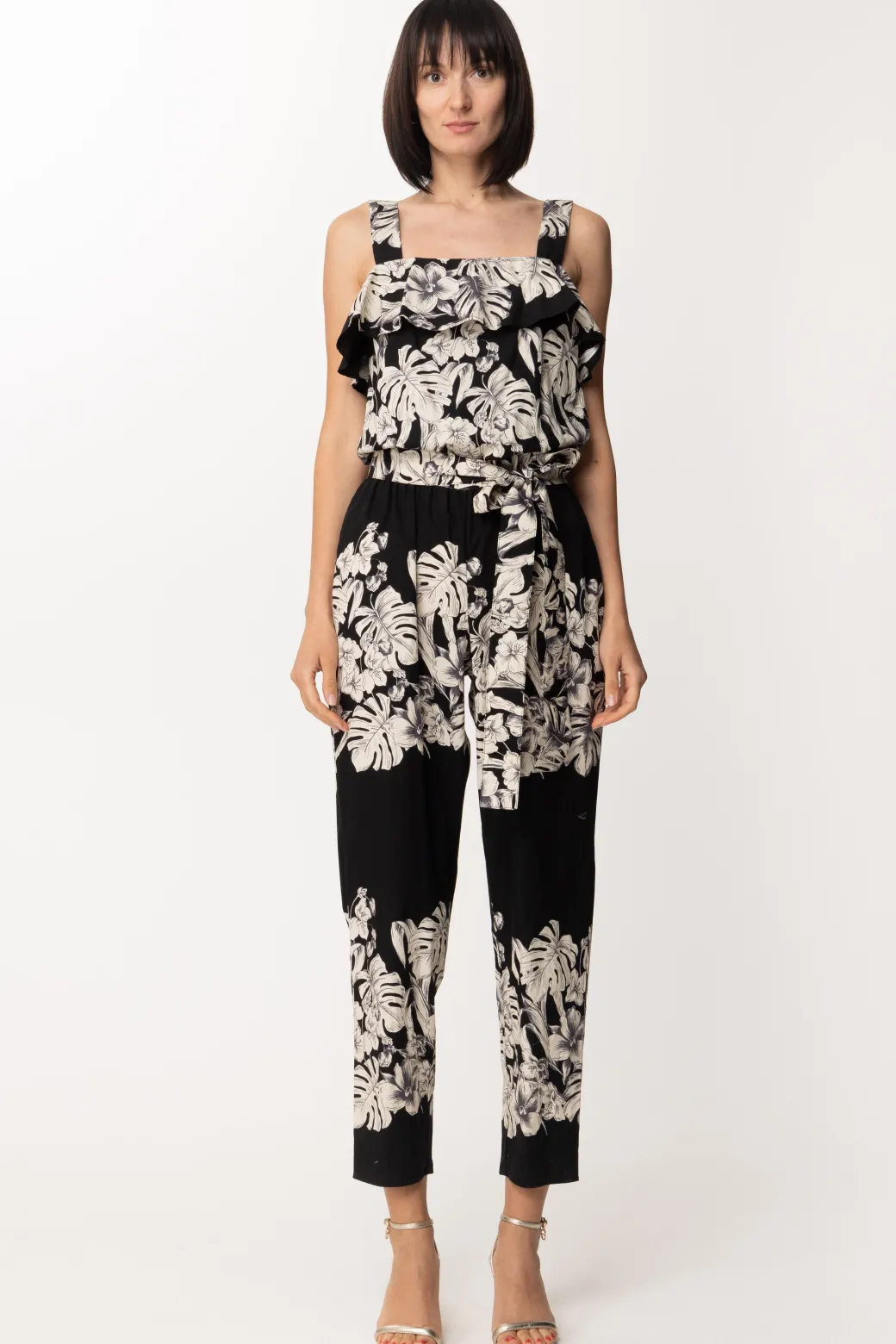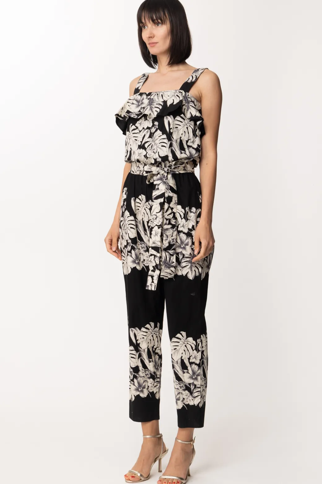 Questa tuta Twin Set ha tutte le carte in regola per essere il capo perfetto per le tue serate estive più chic! Fantasia floreale perfetta per la stagione, realizzata in popeline di cotone e impreziosita da volant sullo scollo e una cintura rimovibile in vita perfetta per risaltare le forme. Sandali alti o flat, borsetta in mano e sei pronta per l’occasione.