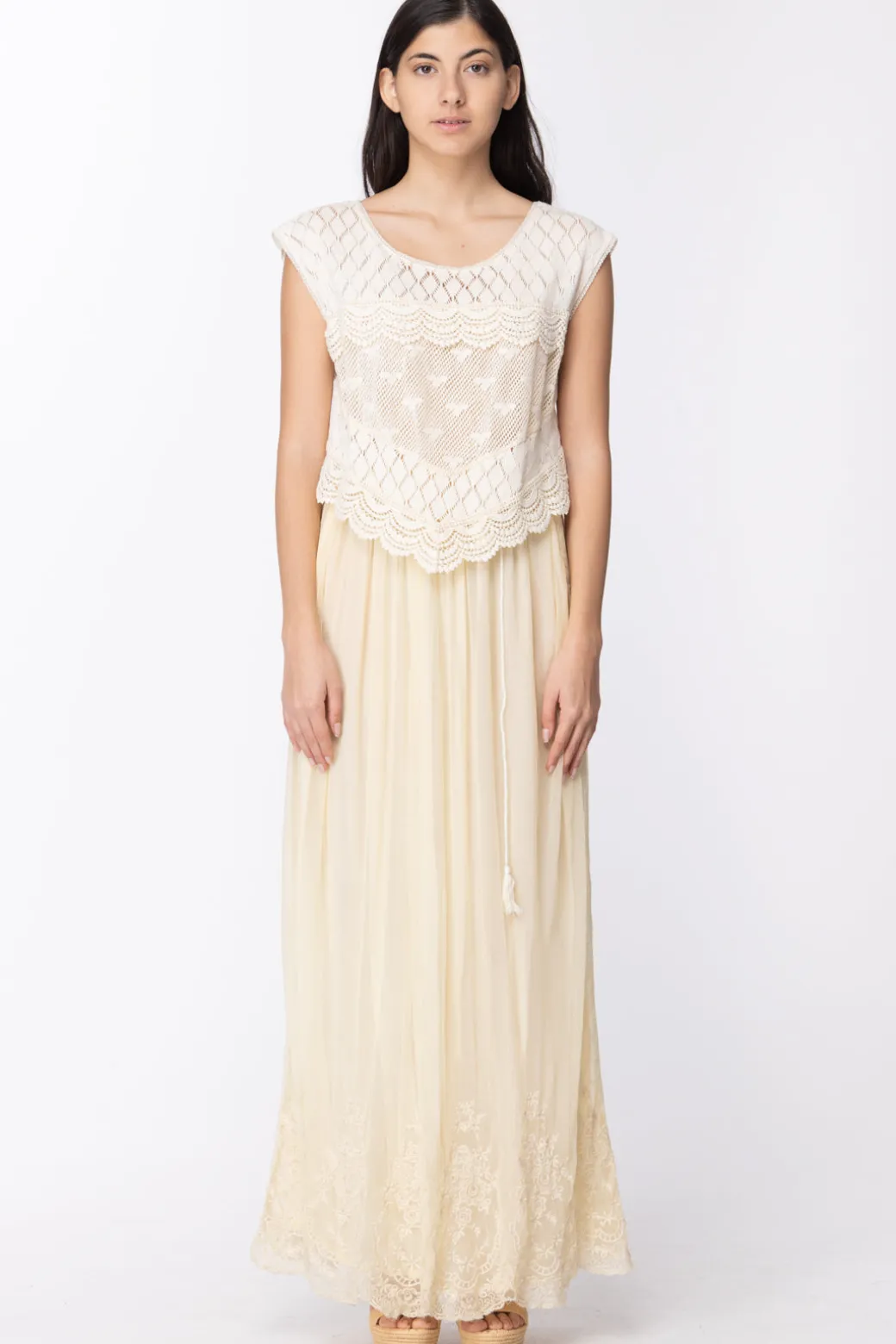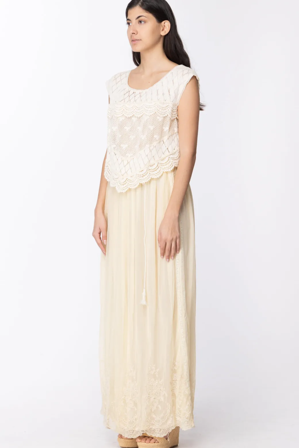 Twin-set Twin-set: Abito Lungo In Tulle con Ricamo In Filo Sul Fondo Corpino In Maglia TraforataECRU