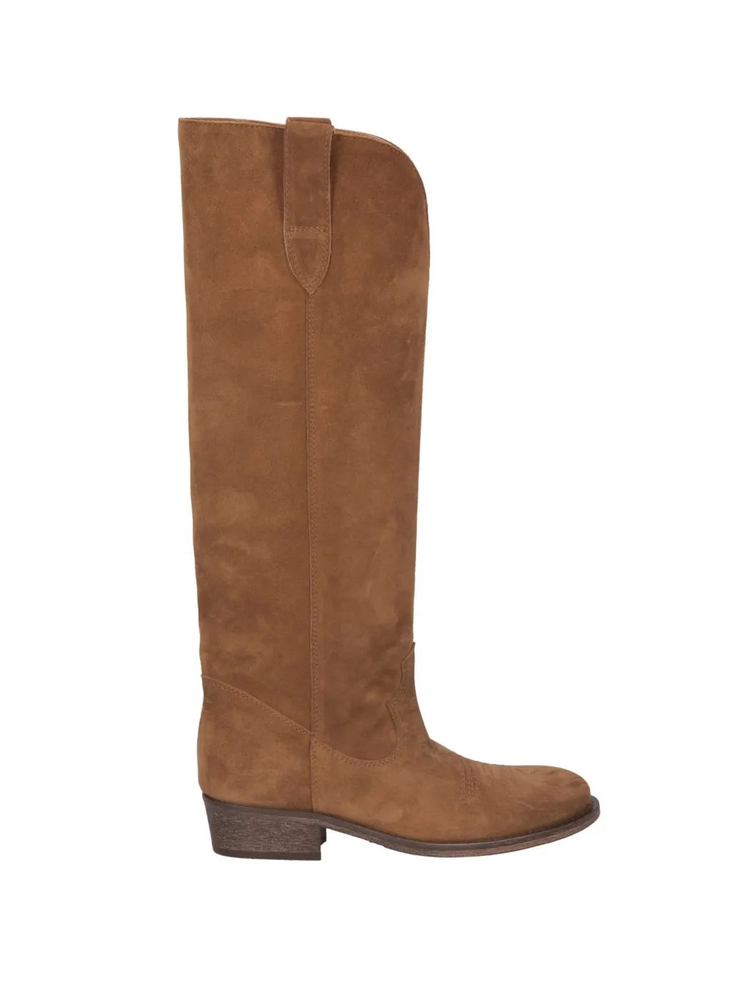 Stivali in camoscio Via Roma 15 dallo stile Texano perfetti per completare un outfit dal mood boho-chic. Design morbido e scivolato, impreziosito da una cucitura sul puntale e una calzatura comoda che lo renderà lo stivale perfetto da insossare tutti i giorni!
