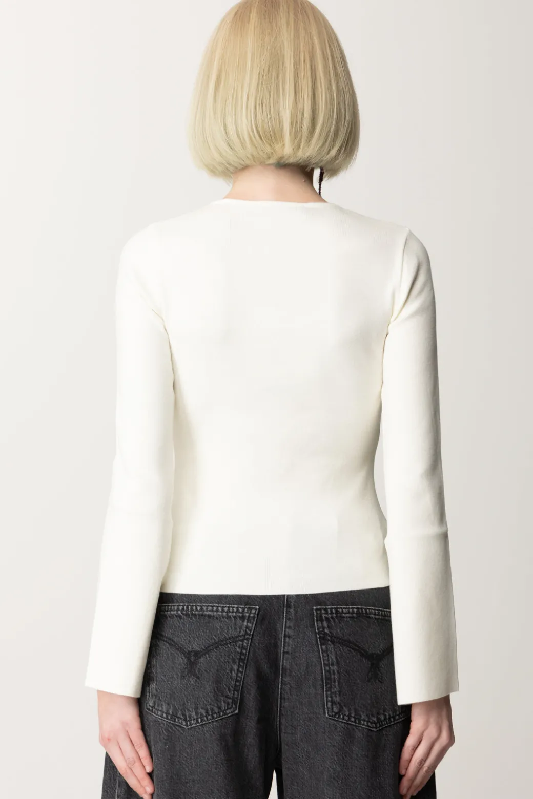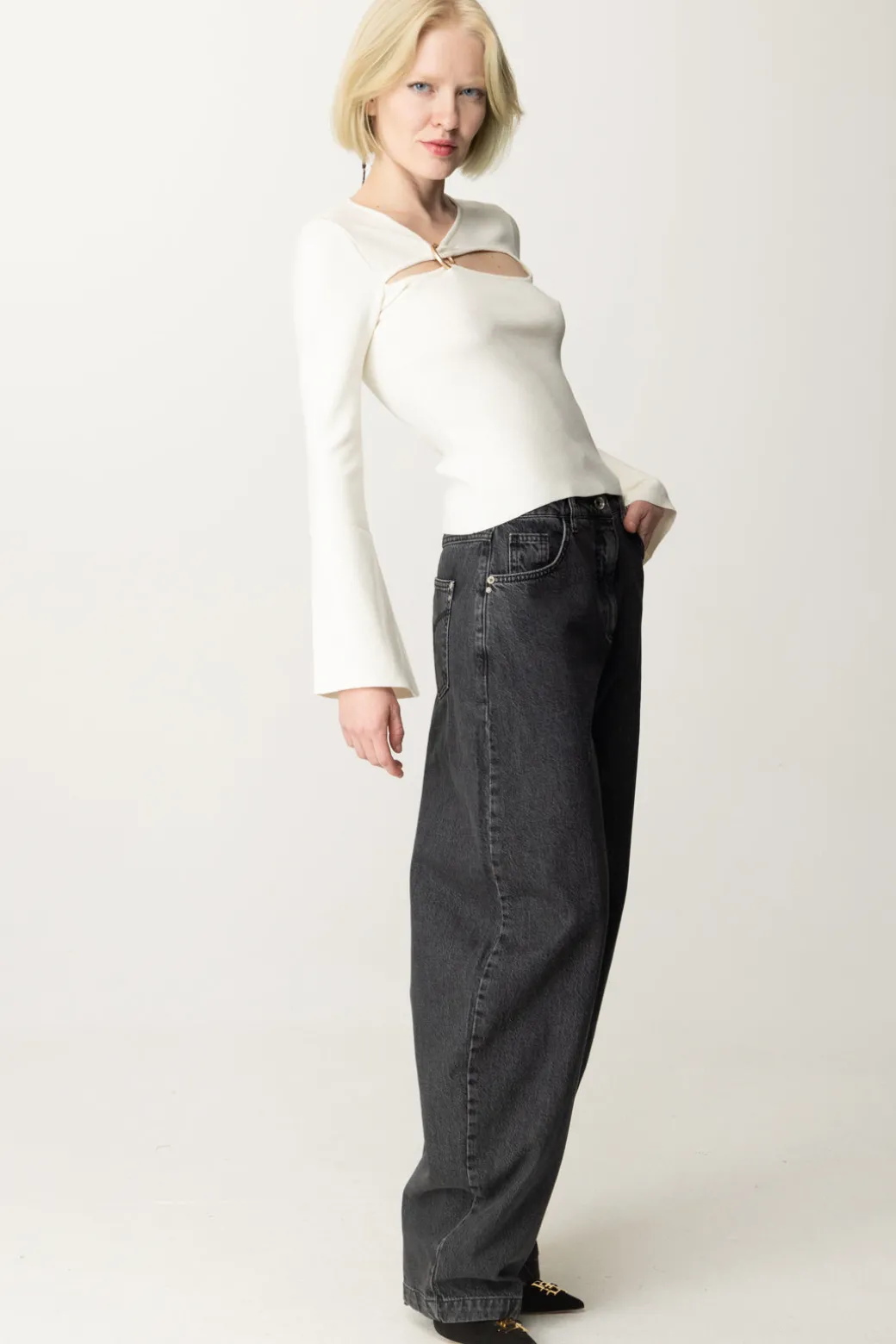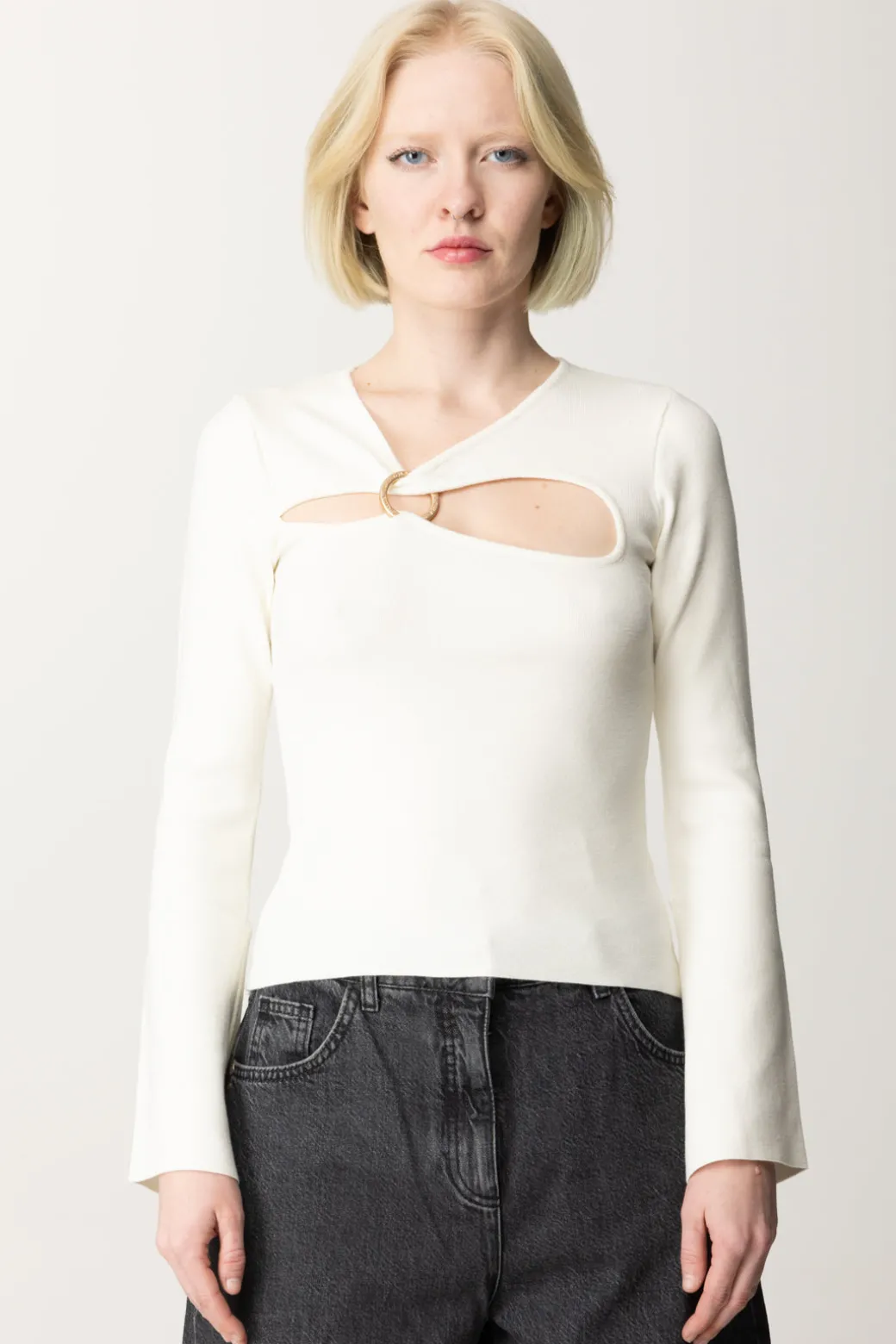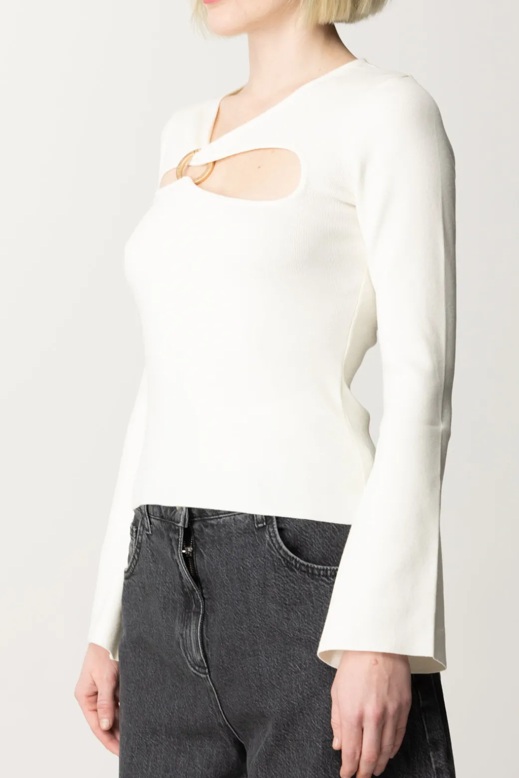 Attenzione puntata sulla scollatura di questa maglia Akep caratterizzata non solo da un cut-out sul petto, che fa paio con lo scollo a barca, ma anche da un accessorio ad anello che rende l’insieme ancora più originale ed interessante. Un capo versatile e di qualità, un asso nella manica per completare i tuoi look più differenti con un tocco di estro e femminilità.