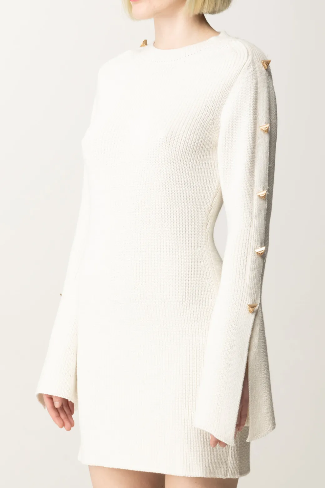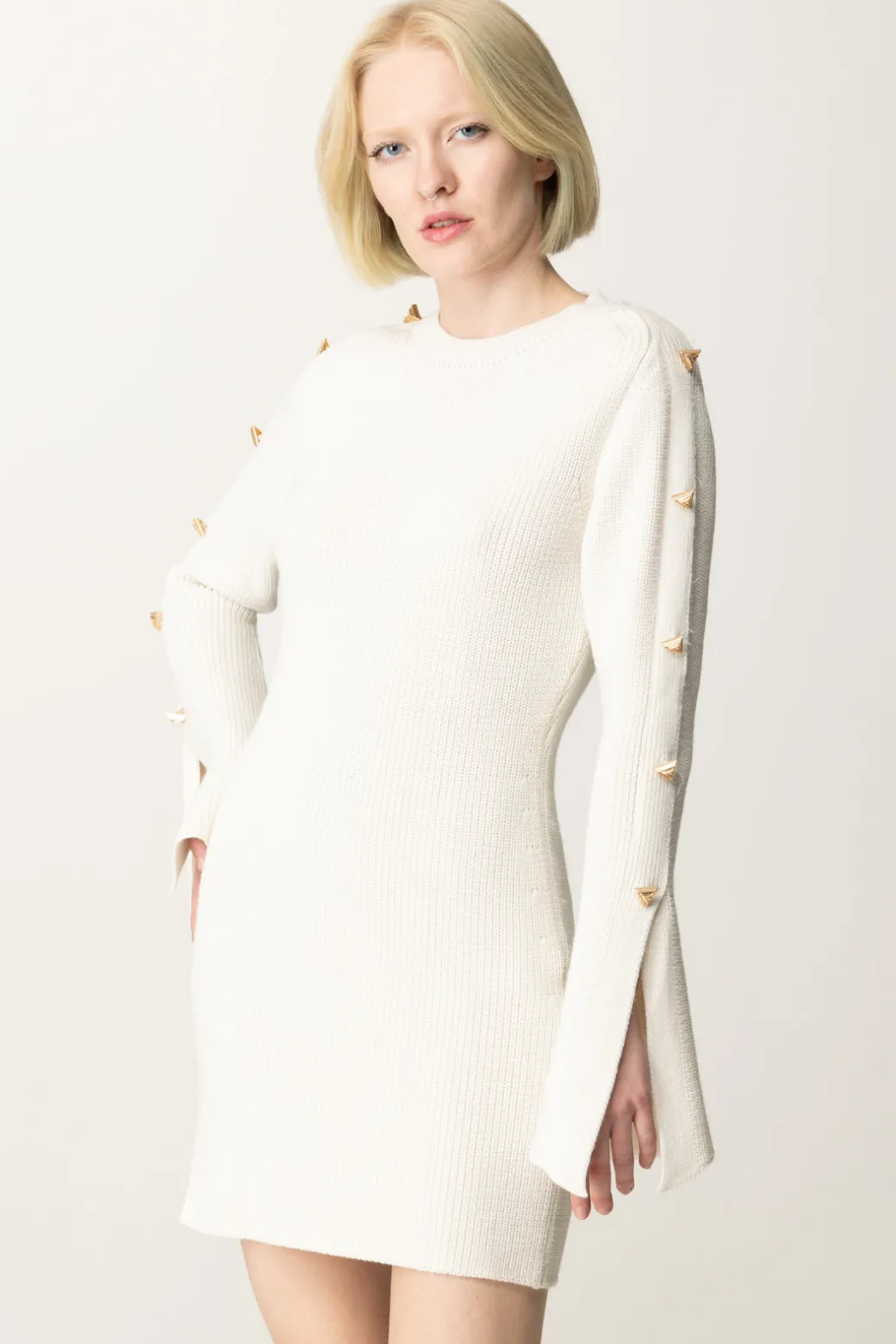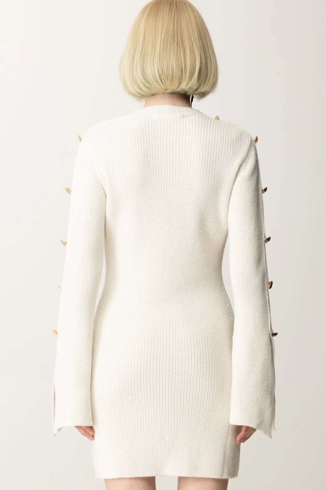 L’abito Akep dalla texture in maglia dal fit aderente, è impreziosita sulle maniche da una fila di bottoni gioiello applicati lungo tutta la manica che conferiscono un look originale e contemporaneo. Perfetto per un outfit casual ma ricercato, si abbina bene con stivali alti e una borsa a tracolla dal design essenziale.
