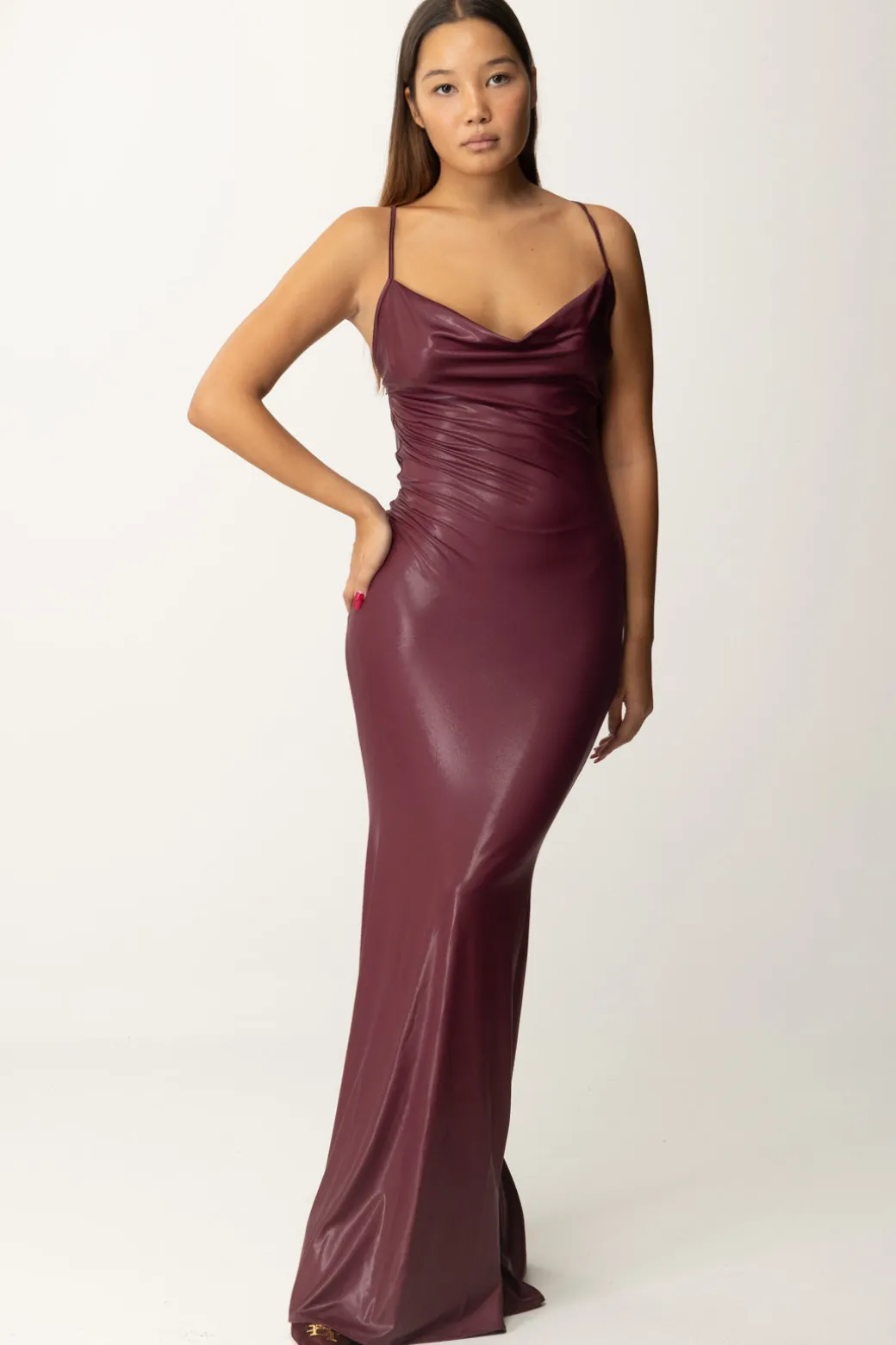 Morbidezza, luminosità, sensualità: un tris di vocaboli per definire questo abito lugno Aniye By, realizzato in jersey laminato con ampia scollatura sul fronte e ancora più ampia sul retro, con sottili spalline a incrocio. Una mise da sera da vera protagonista, da completare con un bel tacco alto e tintinnanti bijoux.