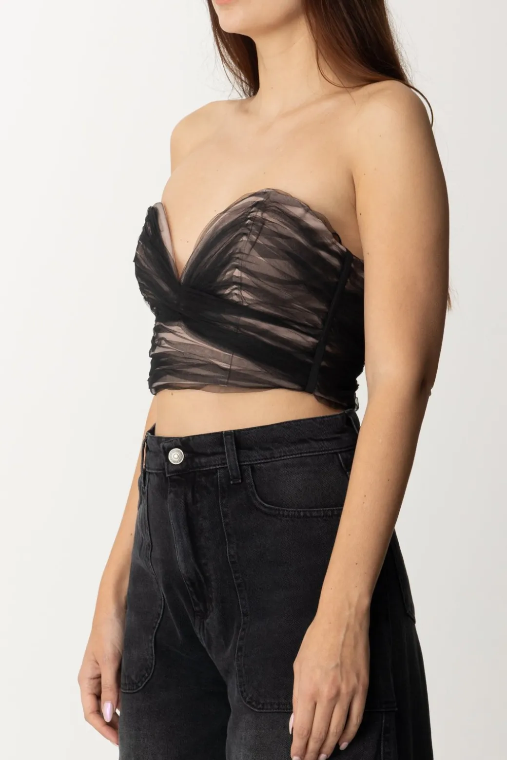 Romantico e sexy, un top che valorizza ogni tipo di decolletes con il suo scollo cuore e il rivestimento in tulle a contrasto che aggiunge movimento e volume ai tuoi outfit. Innamoratissime di questo bustier Aniye By: divertiti ad abbinarlo ai tuoi bottom per look di ogni allure, dall grintoso denim alla raffinata gonna a tubo per una serata a due. E che ne dici come sottogiacca?