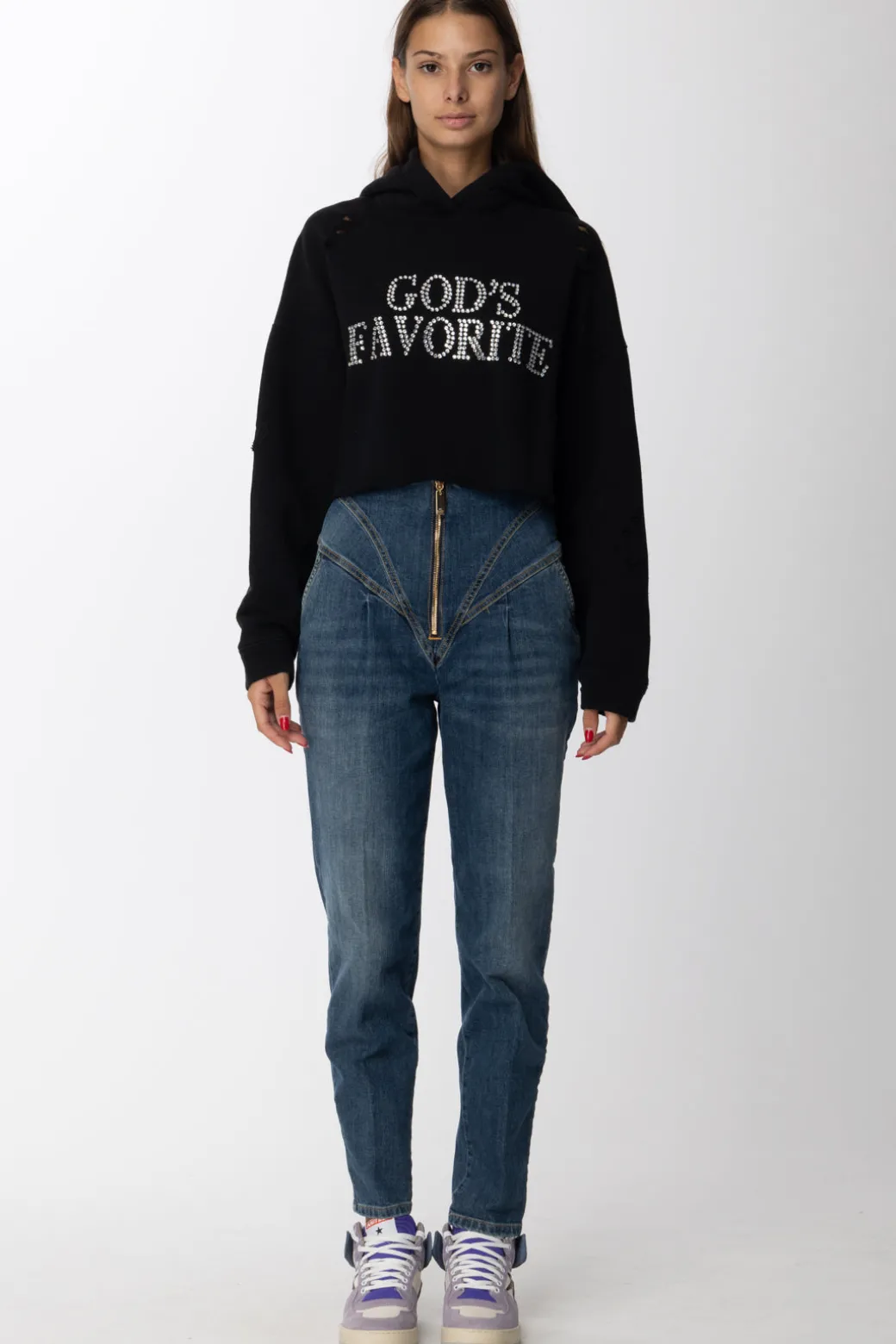 Felpa AniyeBy dal design semplice e comfy, impreziosita sul davanti da strass che creano un motivo lettering e rotture sparse. Il perfetto capo daily per un look sempre accattivante!