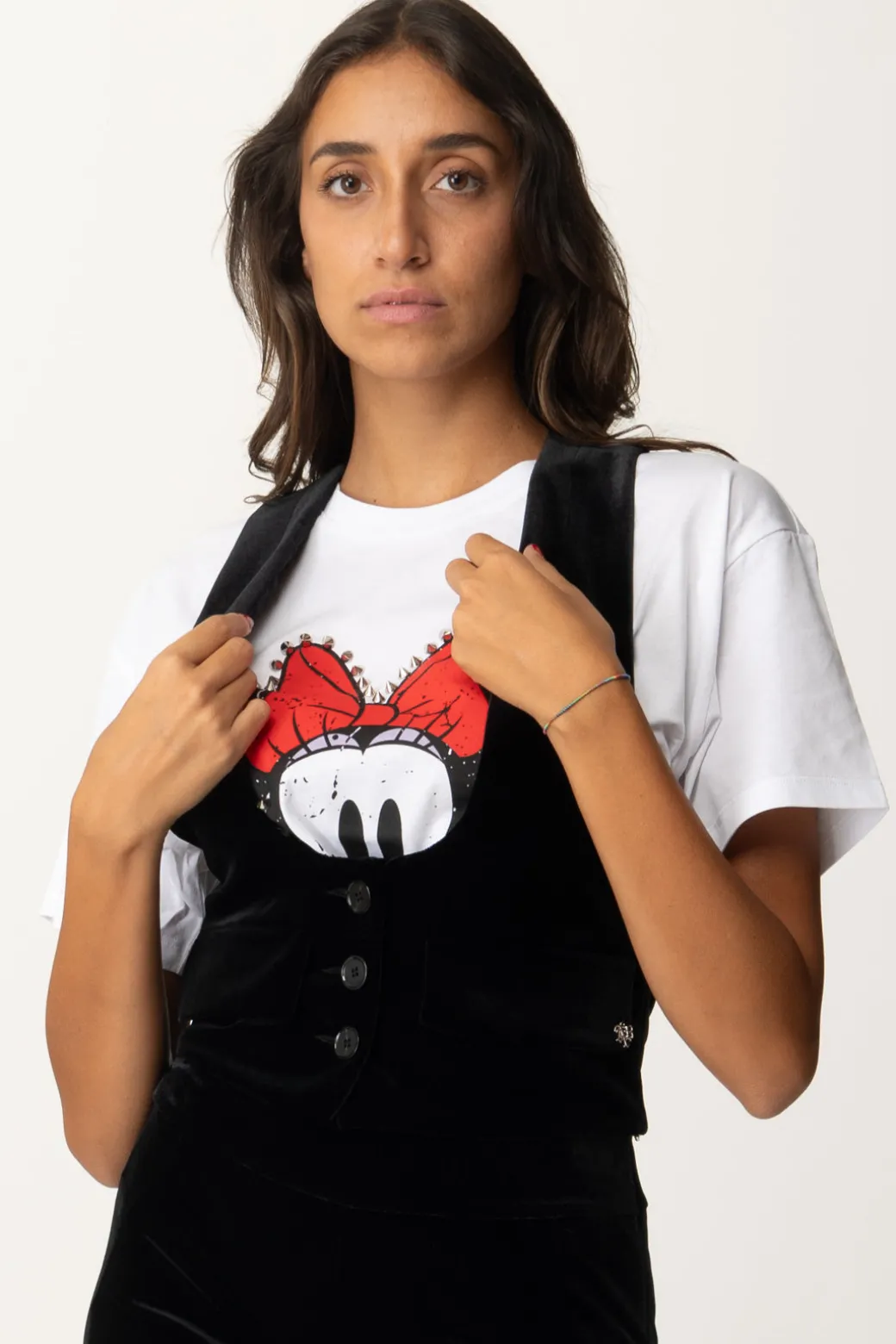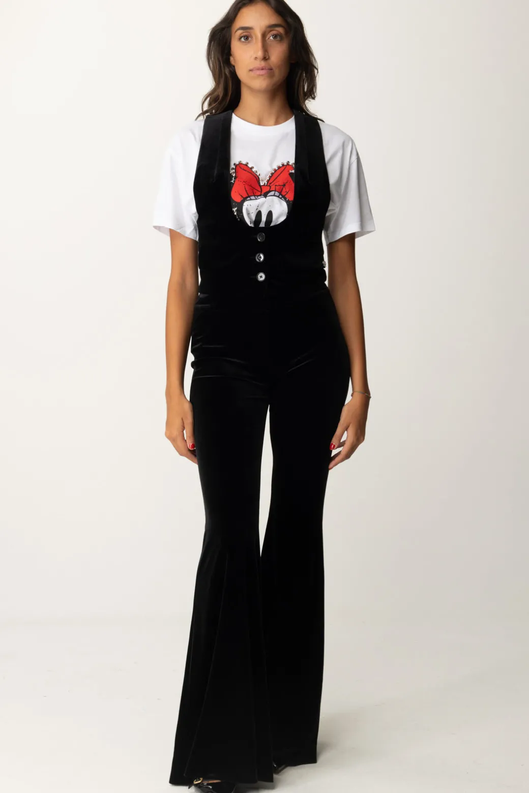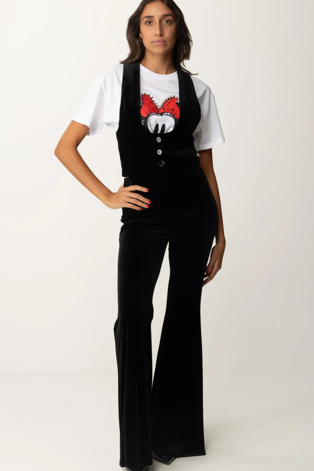 Un Gilet Aniyeby dal taglio classico, realizzato in velluto che aggiunge un tocco di eleganza a qualsiasi outfit. La chiusura a bottoni e la linea strutturata offrono un look raffinato. Un capo versatile che si adatta a diversi stili: per un look casual-chic, indossalo con una t-shirt grafica e jeans skinny per, oppure, per un’occasione più formale, prova a sovrapporlo a una camicia bianca abbinata a pantaloni sartoriali e mocassini.