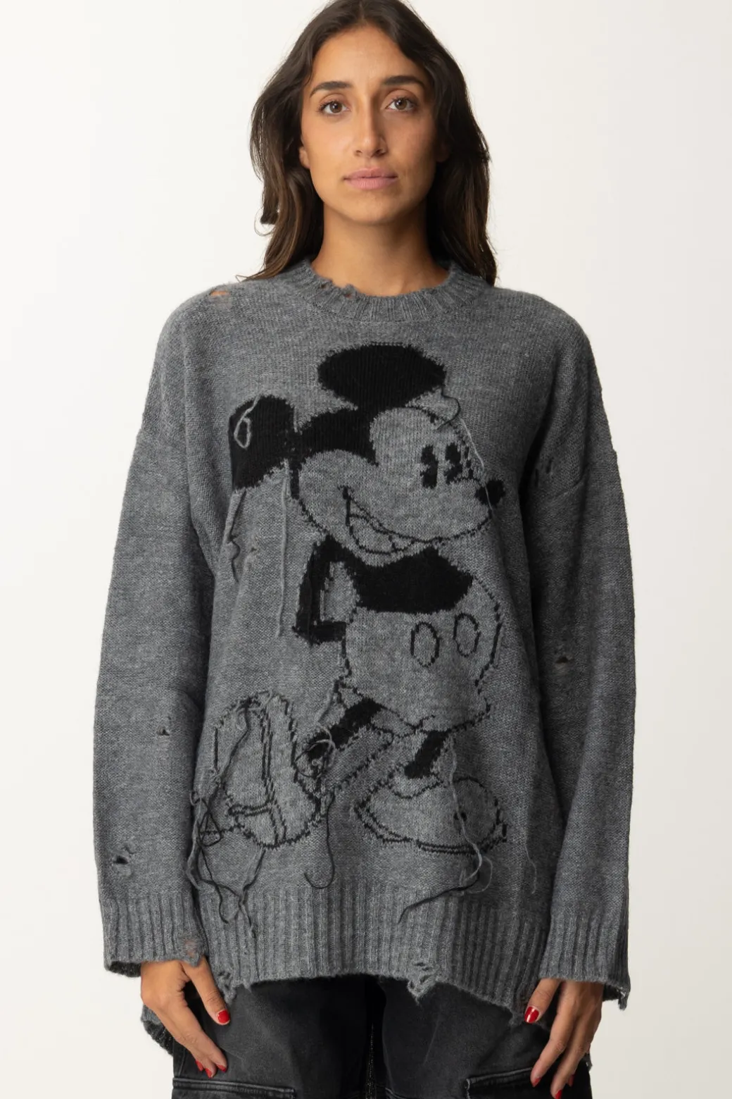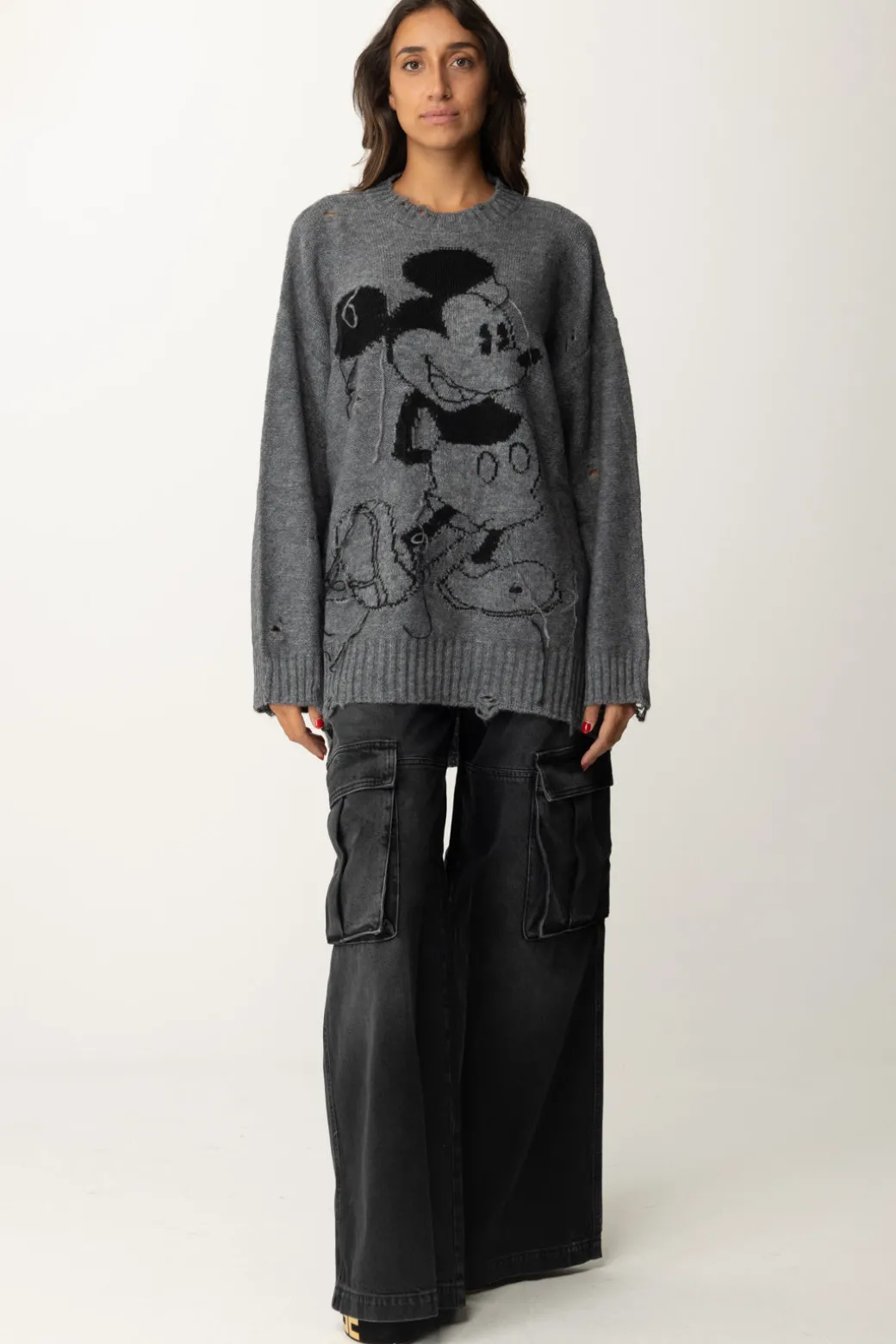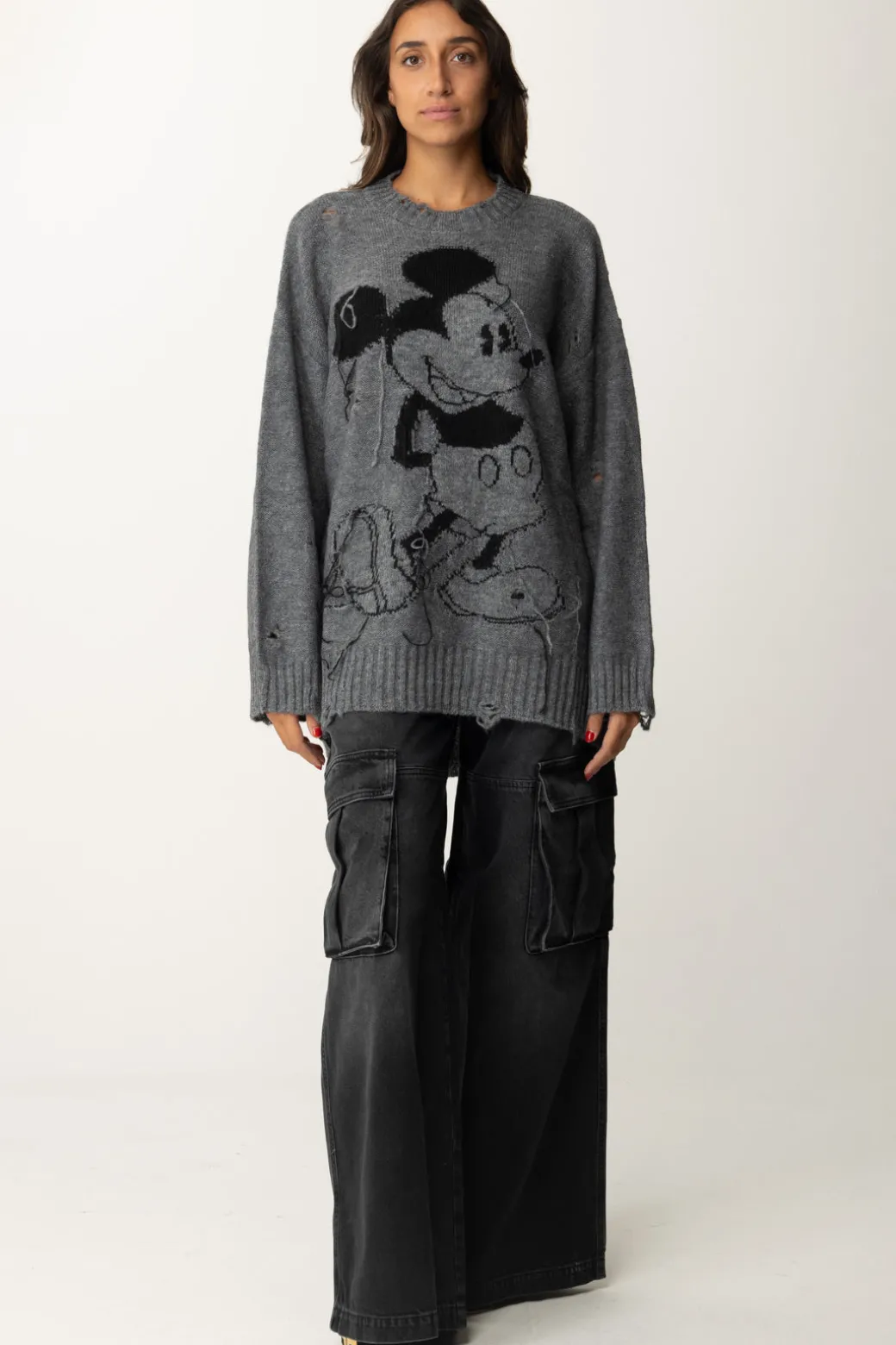 Questo maxi pull Aniyeby in mohair d’alpaca è un capo avvolgente e caldo, perfetto per la stagione fredda. Il disegno intarsio di Mickey e il fondo leggermente stondato nel retro, con finiture sfrangiate, conferiscono al capo un aspetto rilassato e grintoso.
