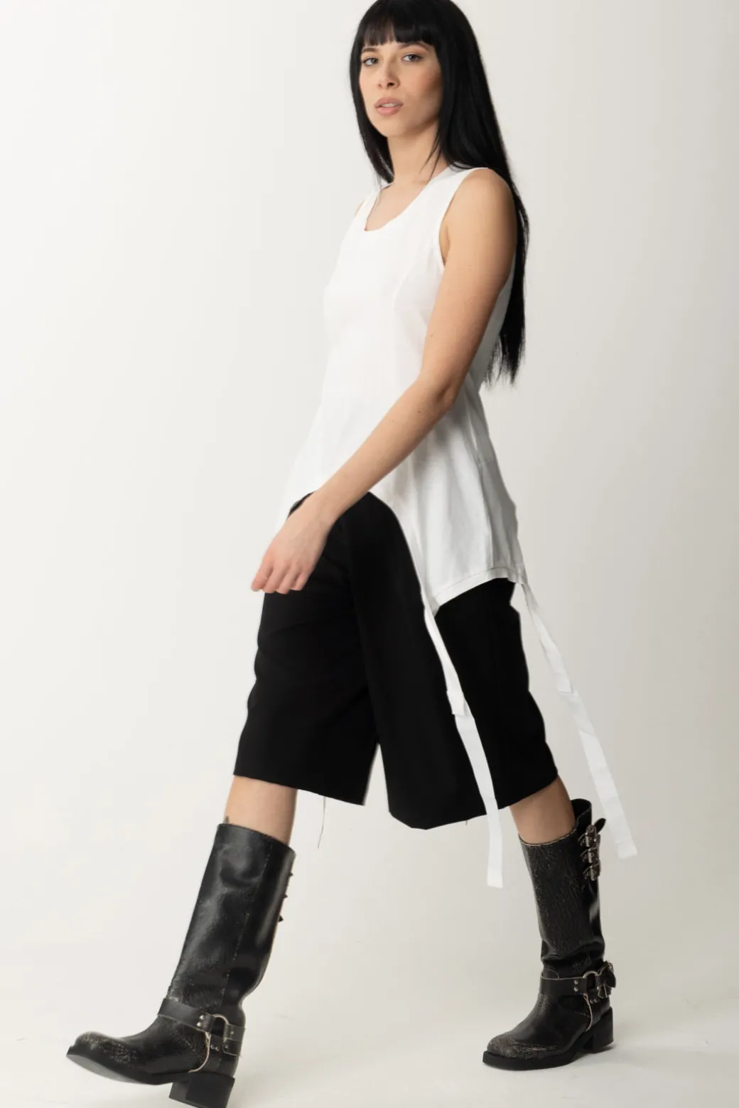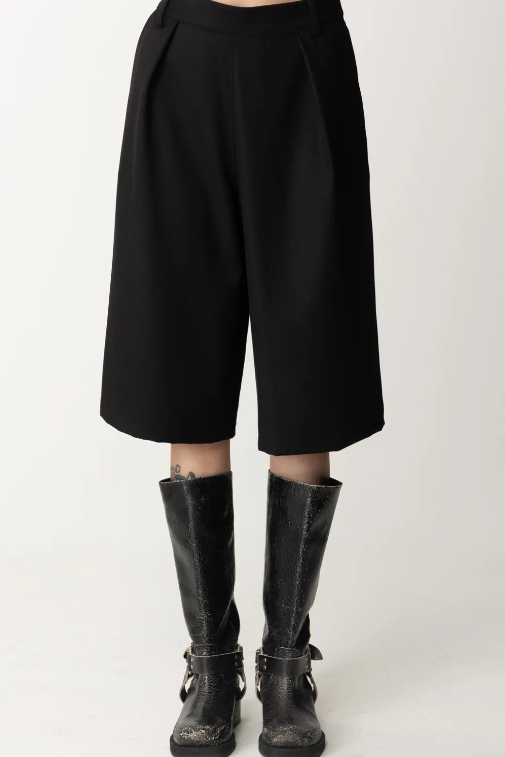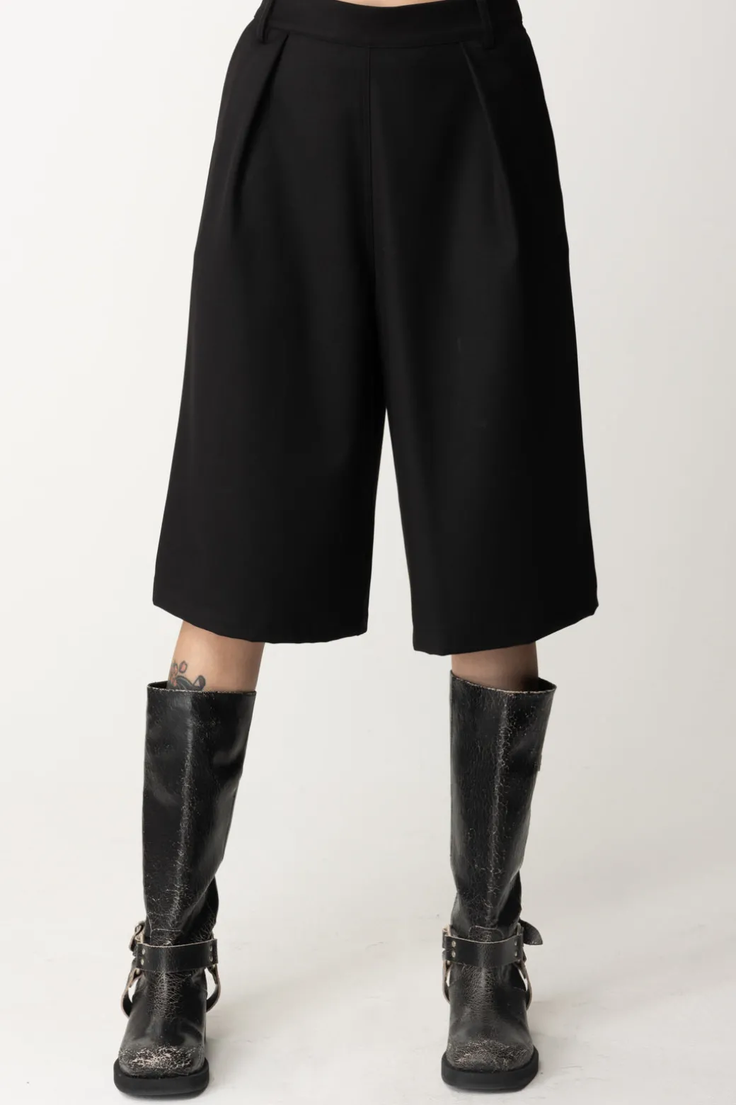 Bermuda Aniyeby realizzati in fresco lana con pince e linea ampia. Comodi per i look off duty abbinati a t-shirt e sneakers o per un outfit più trendy con sandali e crop top chic!