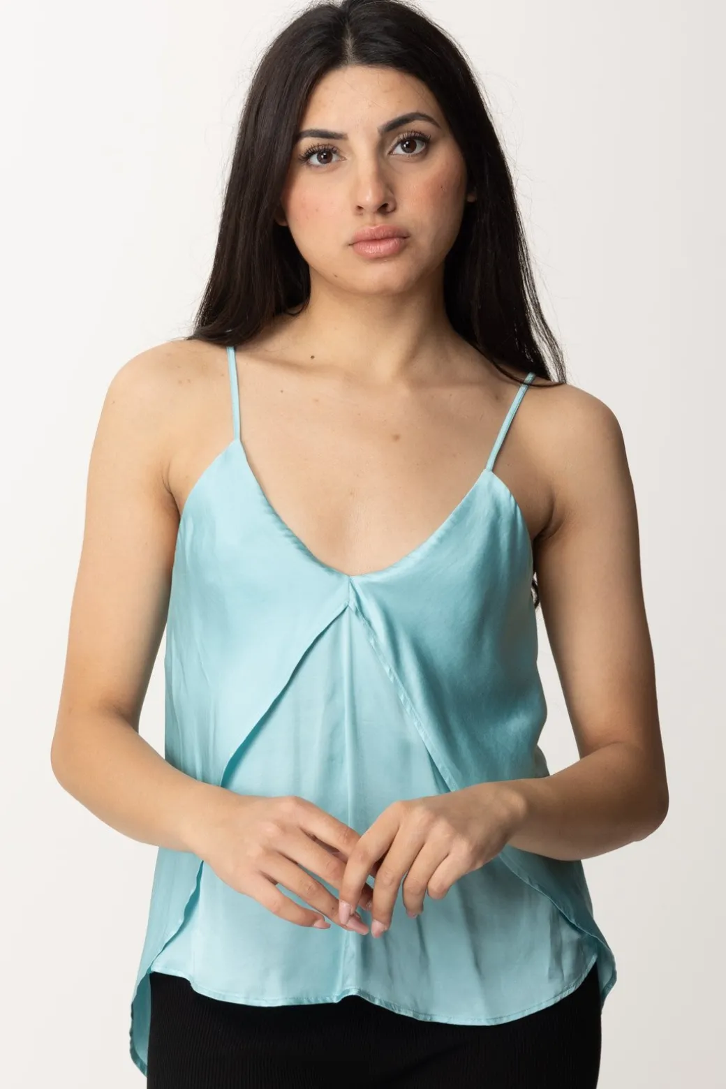 Top Aniye By in rasetto fluido tra i più versatili della stagione. Nonostante il taglio originale, più lungo sul retro, è estremamente neutro e versatile e potrai abbinarlo a bottom di ogni tipo, dal pantalone cargo al denim classico. Bretelle sottili e profonda scollatura a V, si adatta morbido alle tue forme e le esalta con la sua fluidità. Ci piace tantissimo!
