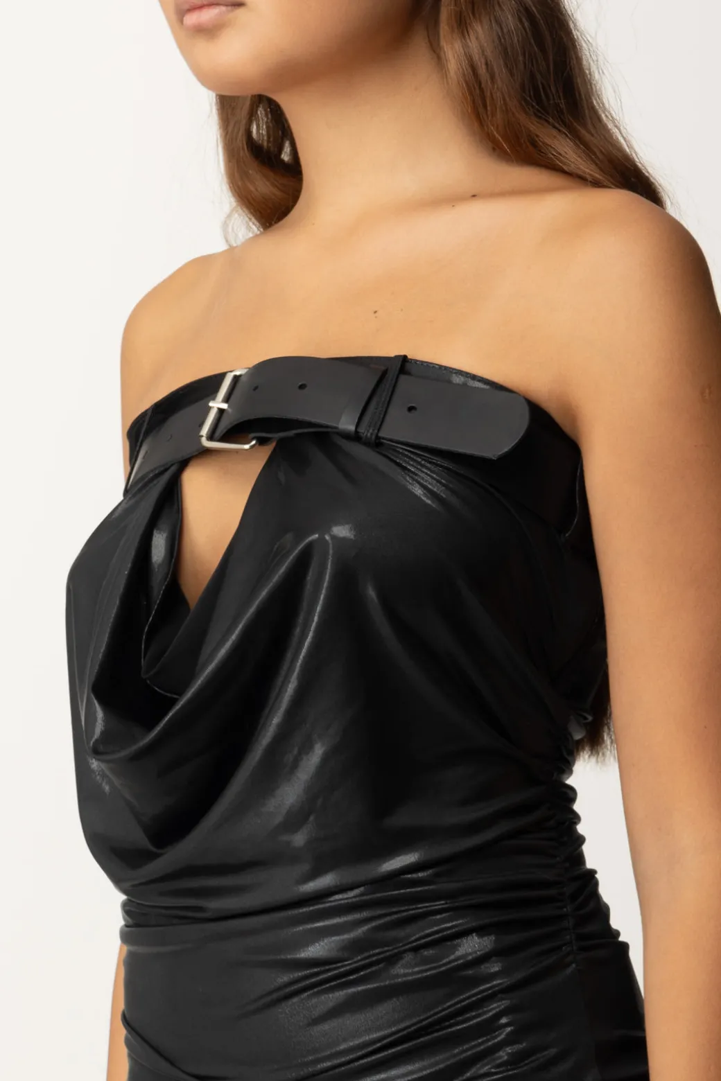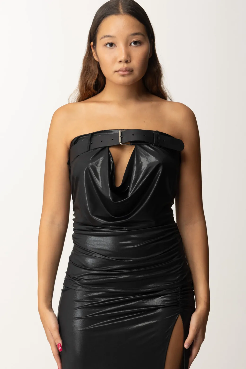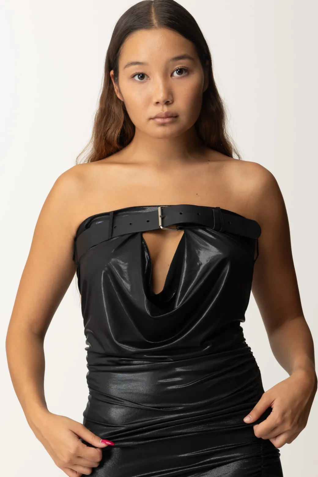 Sexy e originale top Aniye By in jersey laminato, che presenta tutta la sua particolarità nella scollatura a fascia sorretta da una cintura in tinta e corredata da un’apertura a V con un morbido drappeggio. Abbinala ad un denim e u blazer oversize per un look casual e graffiante al tempo stesso, o crea uno strepitoso completo con la gonna dello stesso tessuto.