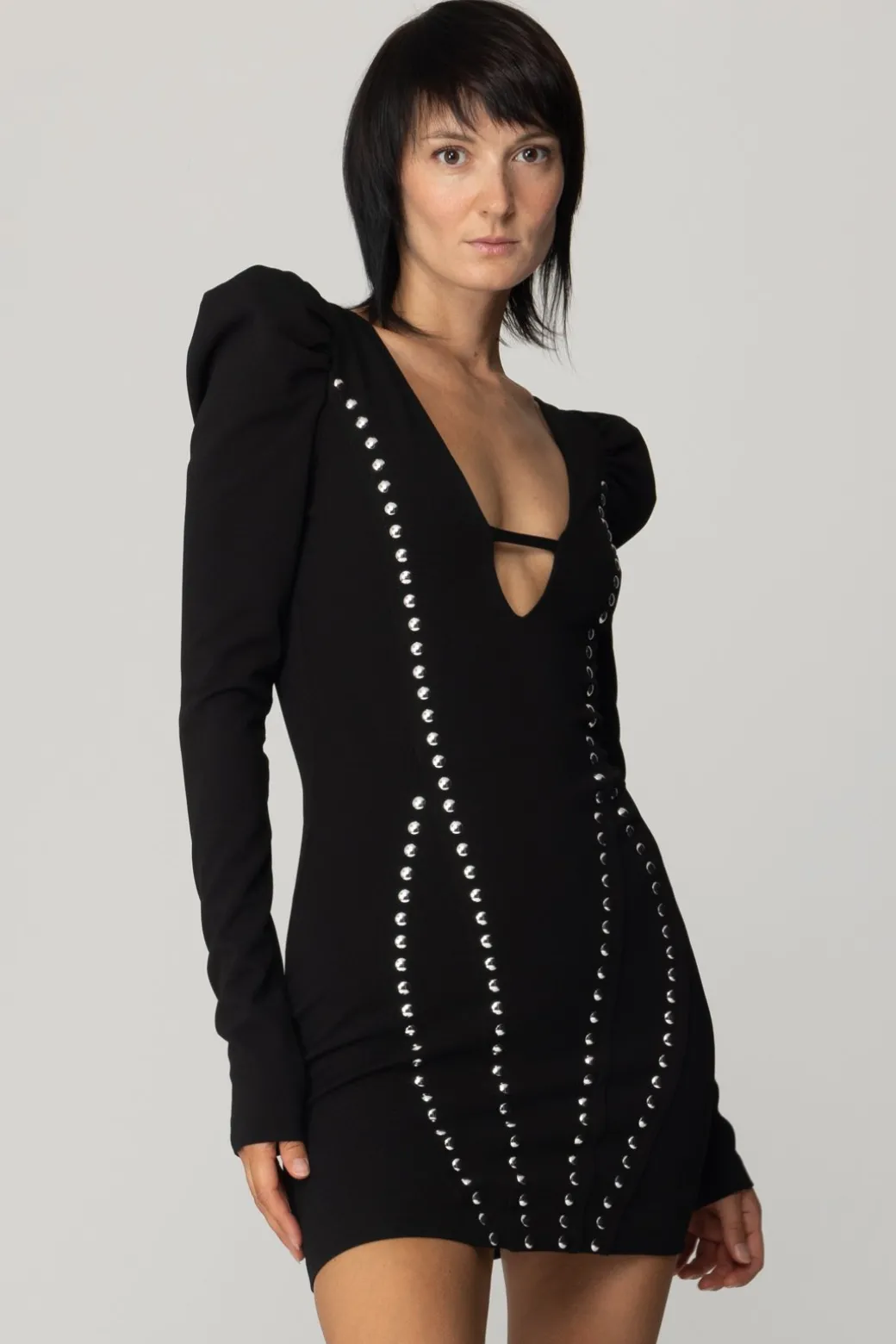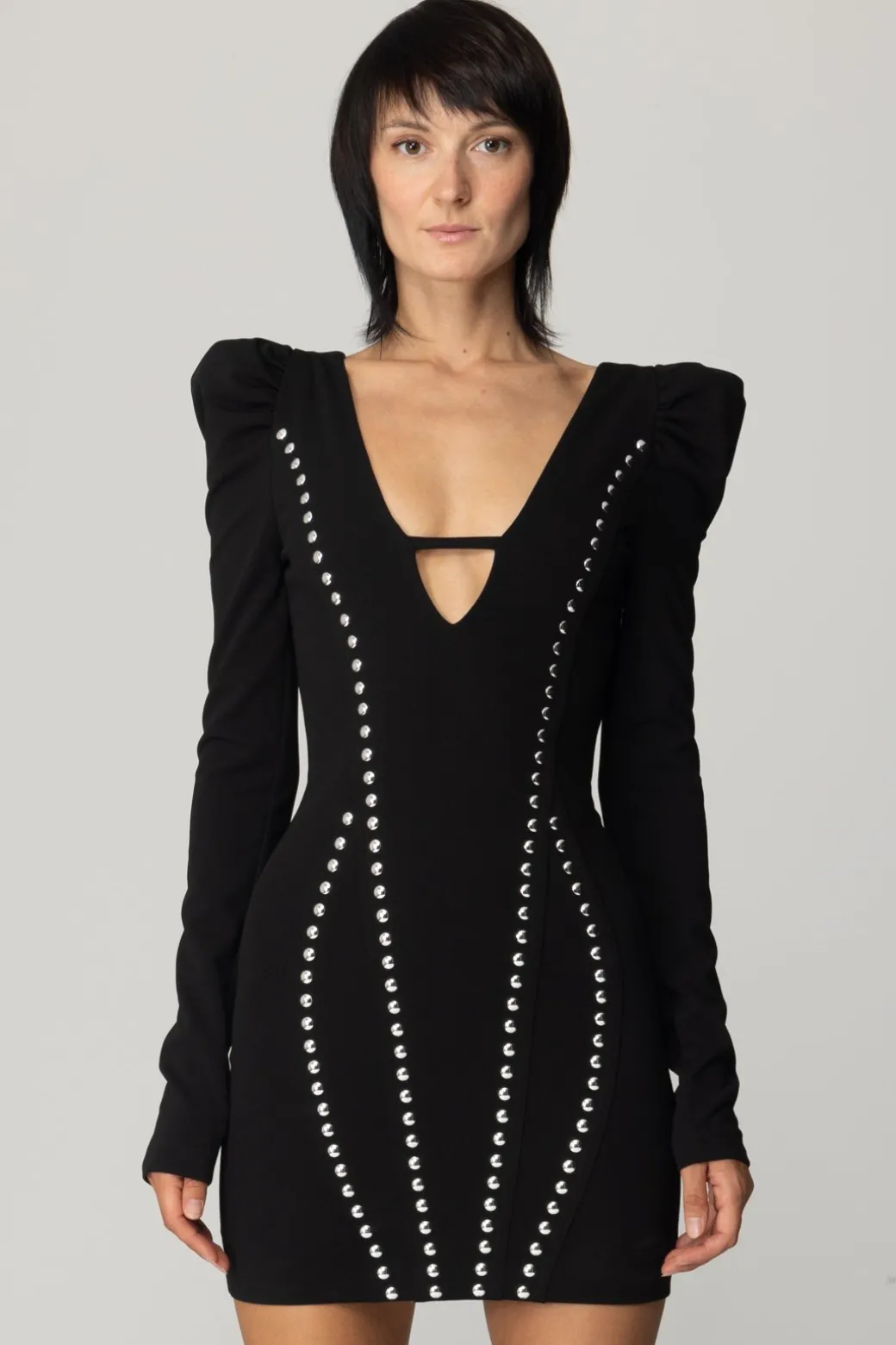 Disegnato con una silhouette sensuale e dall’animo audace: questo tubino Aniyeby viene caratterizzato da un design con spalline importanti, scollo a V e borchie che creano un disegno seguendo le forme del corpo. Irresistibile ed elegante, la scelta perfetta per la sera!