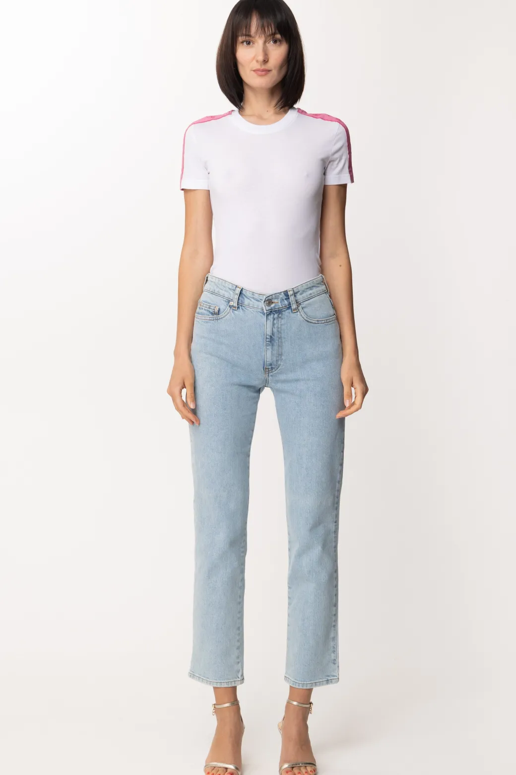 Un top sportivo da poter sfruttare per i tuoi outfit da giorno e tempo libero: una t-shirt Chiara Ferragni girocollo, con banda a contrasto sulle spalle caratterizzata dalla ripetizione del logo Flirting.