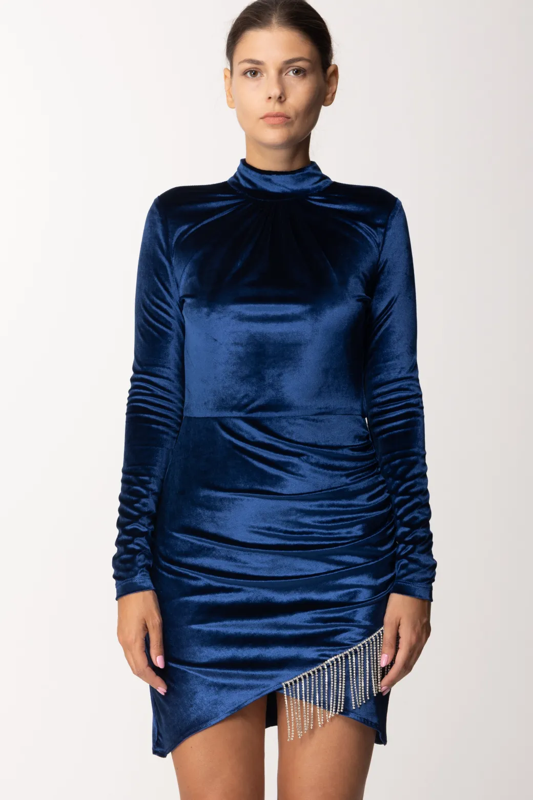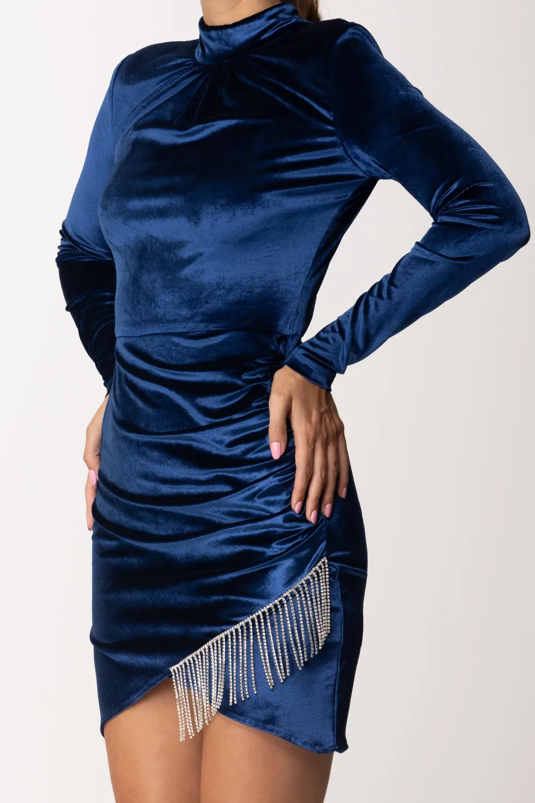 Dramèe Abito Mini In Velluto con Frange In StrassBLU