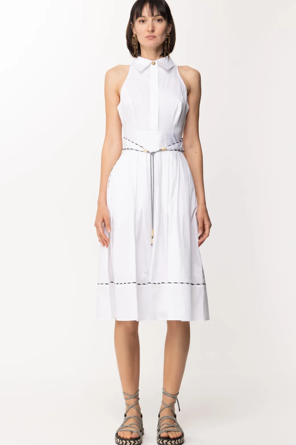 Elisabetta Franchi Abito Chemisier con Piping a ContrastoBIANCO