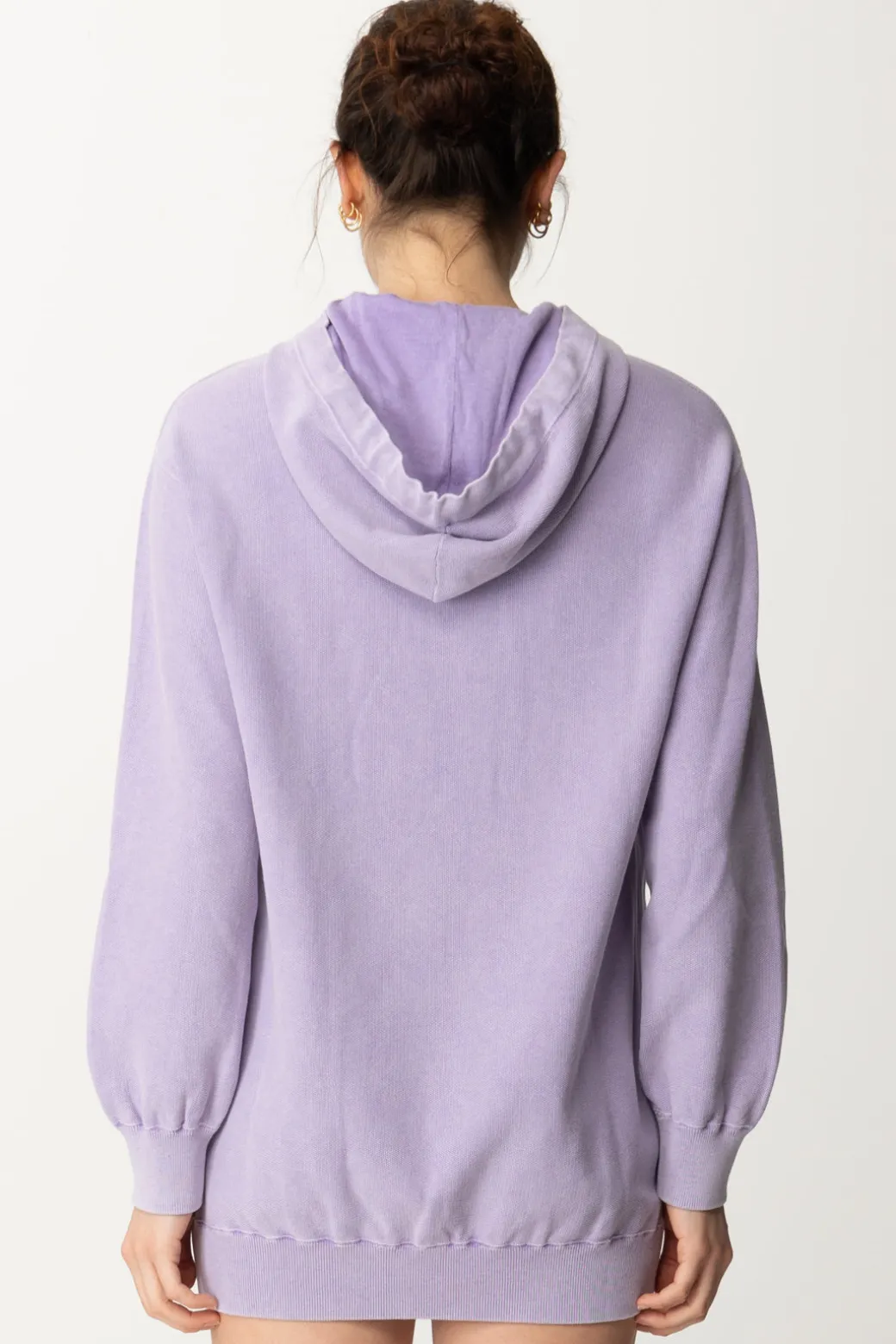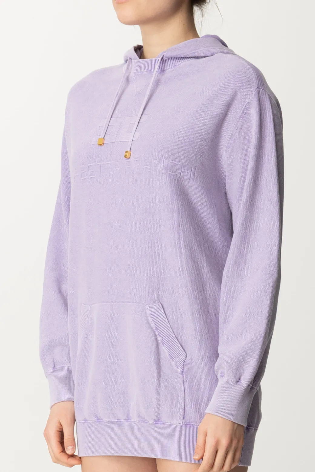 Allure molto urban per questo abito Elisabetta Franchi in maglia di cotone effetto stonewash, che prende il design di una felpa e lo rende maxi per darti una mise casual e femminile al tempo stesso. Cappuccio sulle spalle e logo sul petto, puoi indossarlo come mini abito così come maxi felpa insieme ai tuoi leggings preferiti e fogerti il tempo libero in totale comodità.