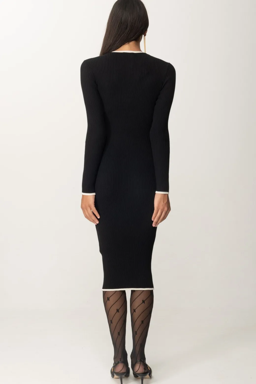 Versatile e quotidiano abito in maglia Elisabetta Franchi, caratterizzato da tessuto in viscosa a costine, profili a contrasto e toppa logo sul petto. Eleva il suo mood con una decolletes e indossalo anche per le tue giornate business: darà un twist ai tuoi look e alla tua idea di femminilità.