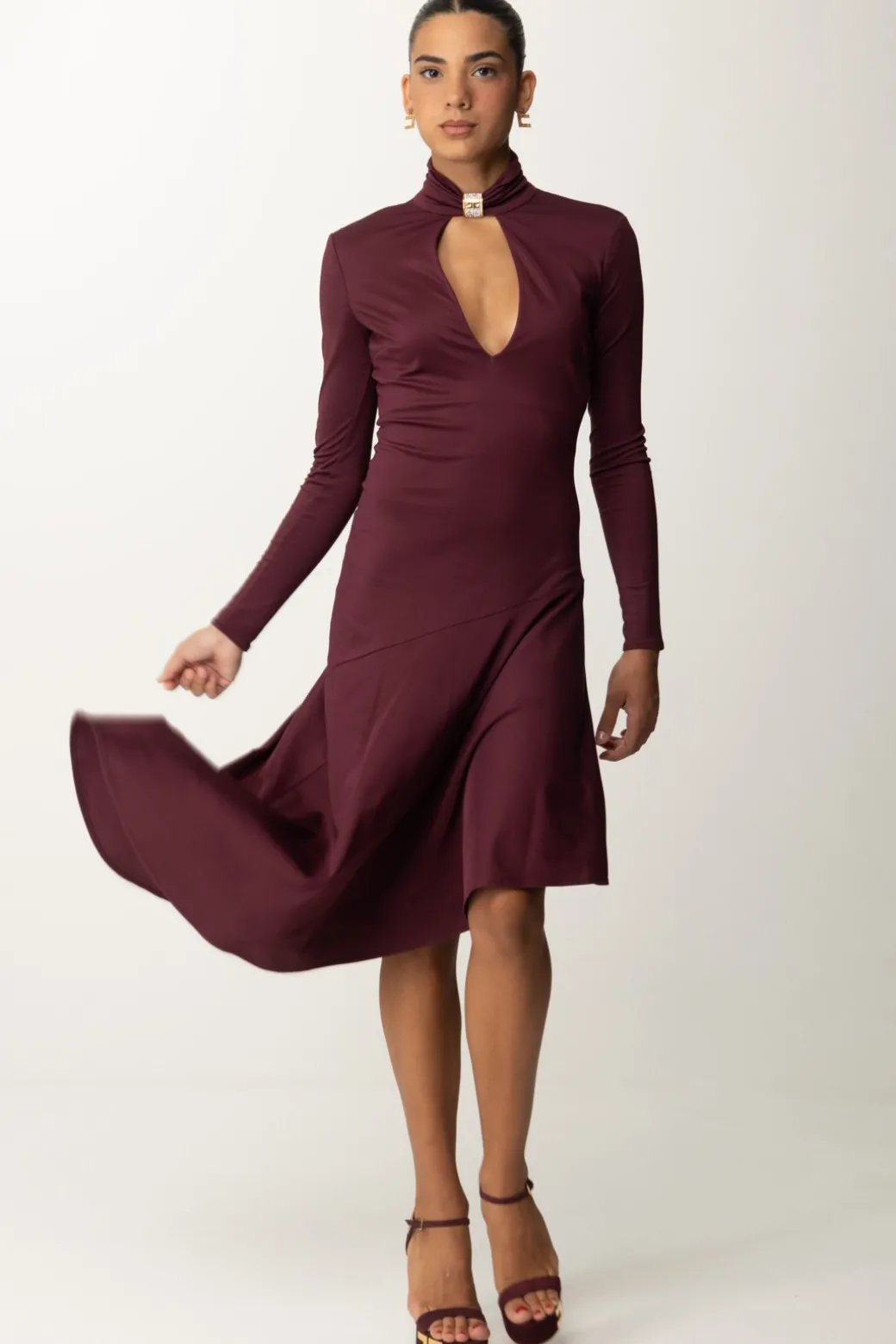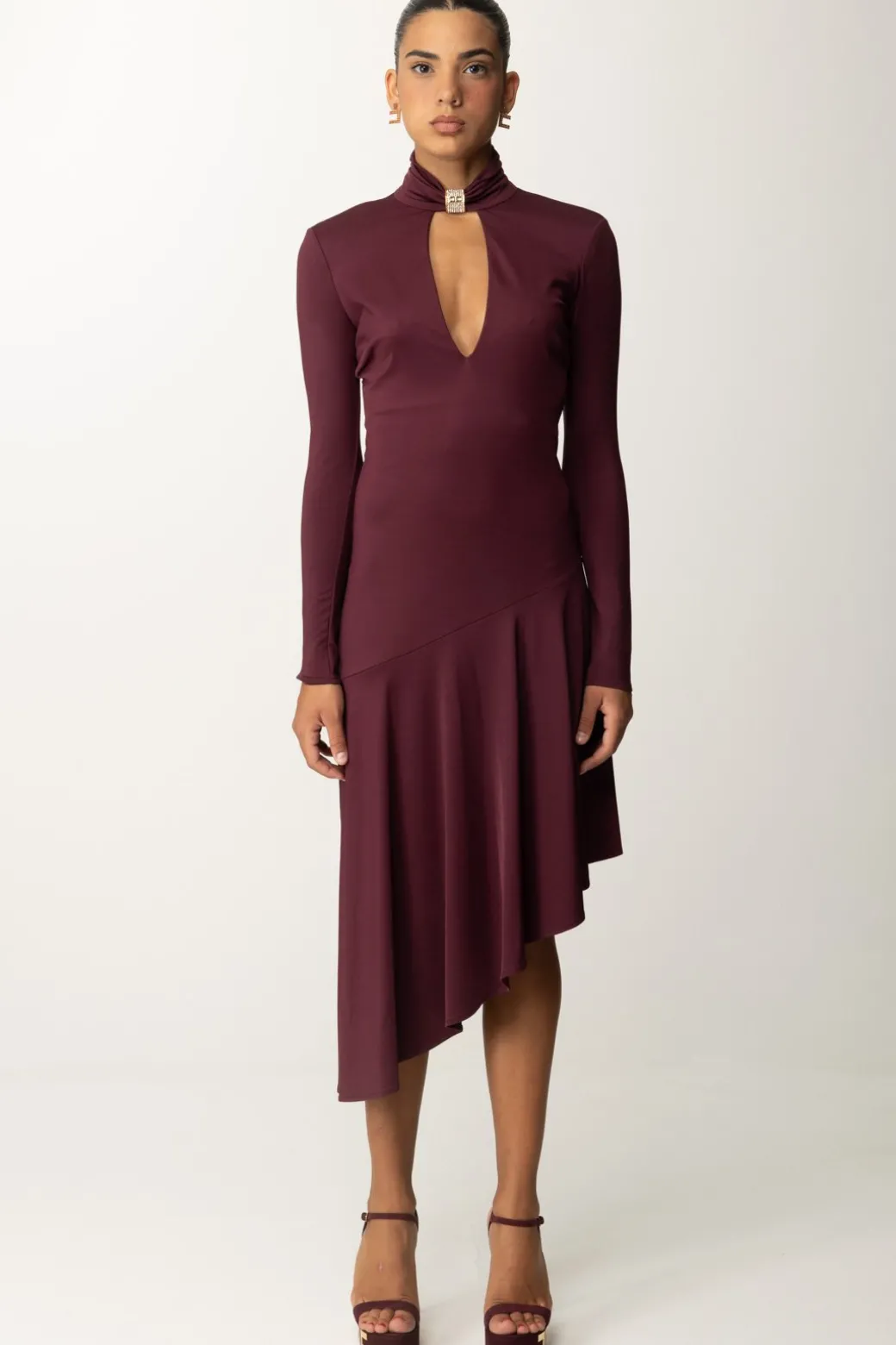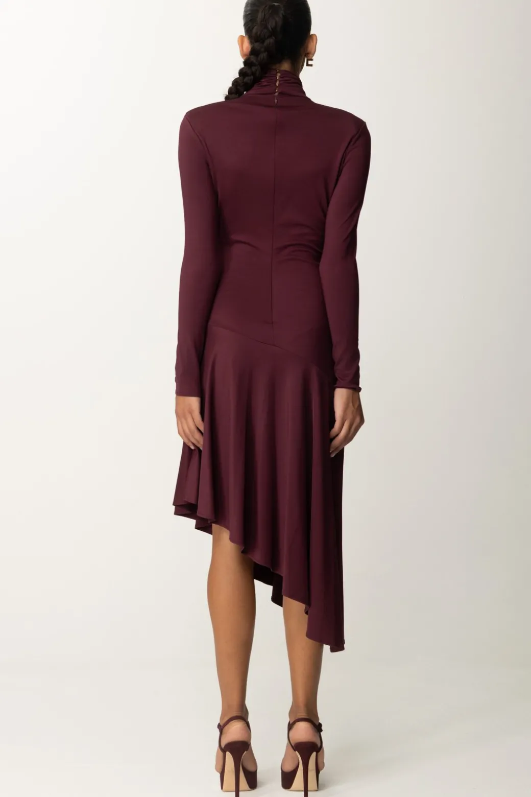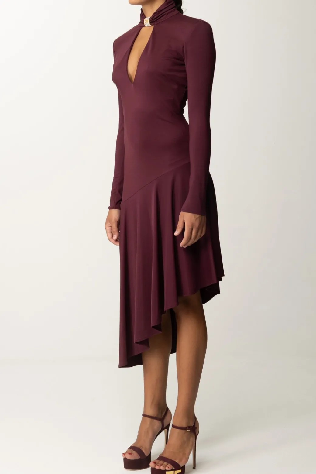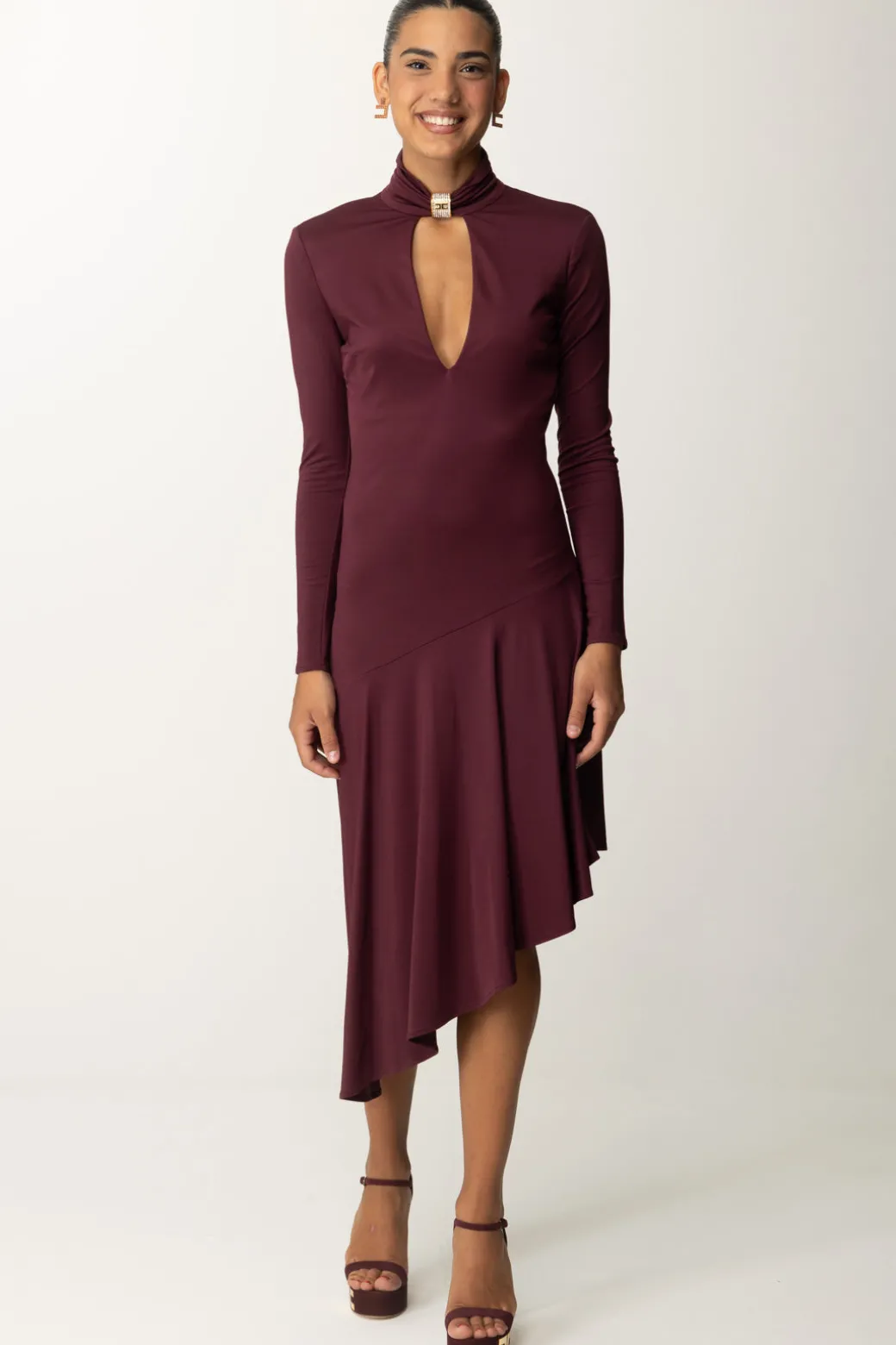Sobrio e d’impatto: questo abito midi Elisabetta Franchi è il top se sei alla ricerca di una eleganza raffinata, non appariscente e ricercata al tempo stesso. Jersey fluido e aderente, con un taglio diagonale dal fianco in giù l’aderenza cede il passo ad una balza asimmetrica, che movimenta e alleggerisce l’outfit. Da notare anche il top: scollo a goccia combinato con collo alto con accessorio gioiello: impeccabile, non trovi?
