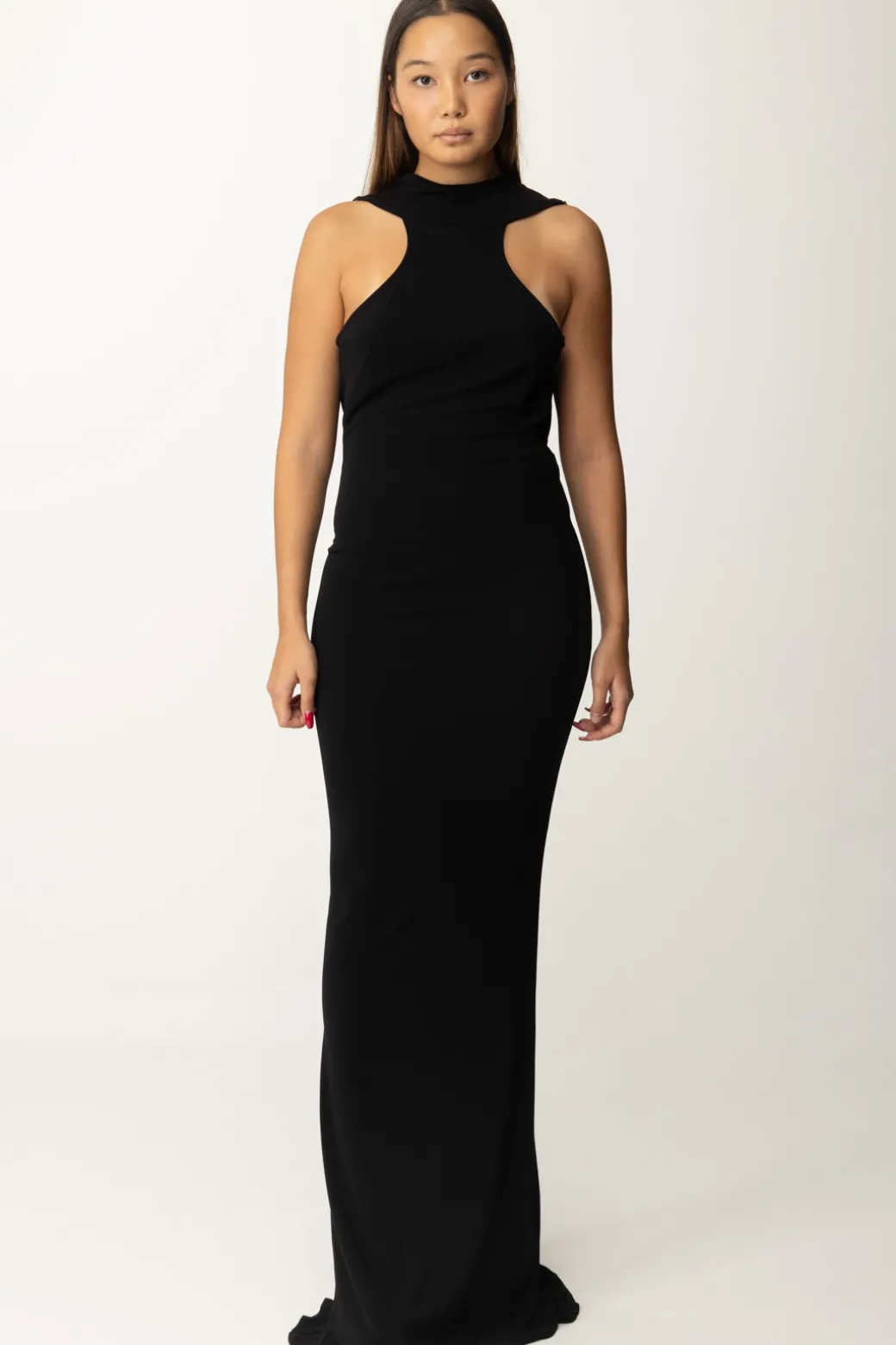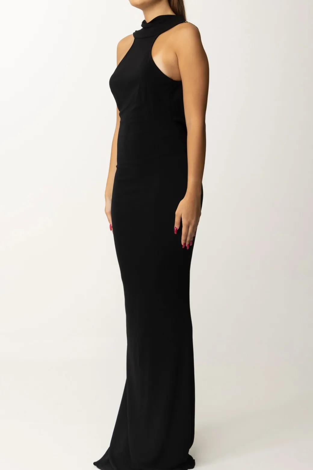 Bellezza ed eleganza moderna e ricercata per questo abito Red Carpet Elisabetta Franchi. Il jersey crepe con sui è realizzato aderisce alla silhouette rendendola statuaria, equilibrando il tutto con la svasatura della gonna al fondo, mentre lo scollo all’americana sul fronte divanta un’ampia apertura sulla schiena ornata da una collana con pendente logo. Una mise impeccabile per le tue serate galanti, a cui aggiungere solo luminosi orecchini e un bel tacco che dia slancio.