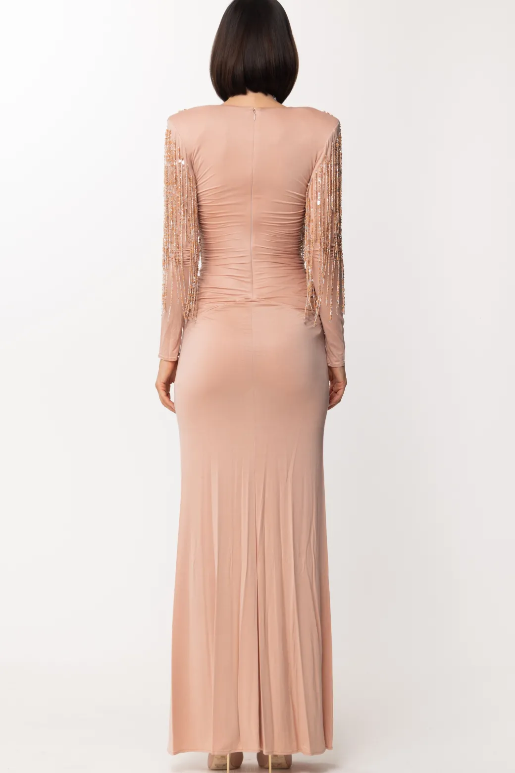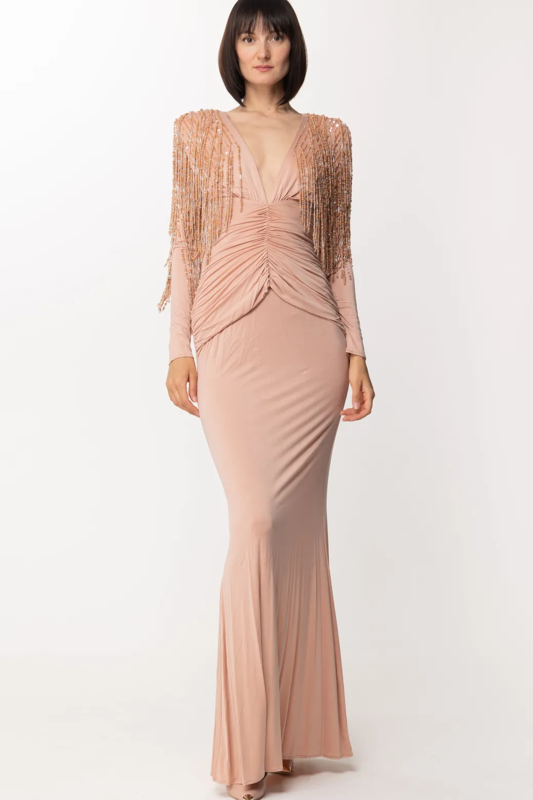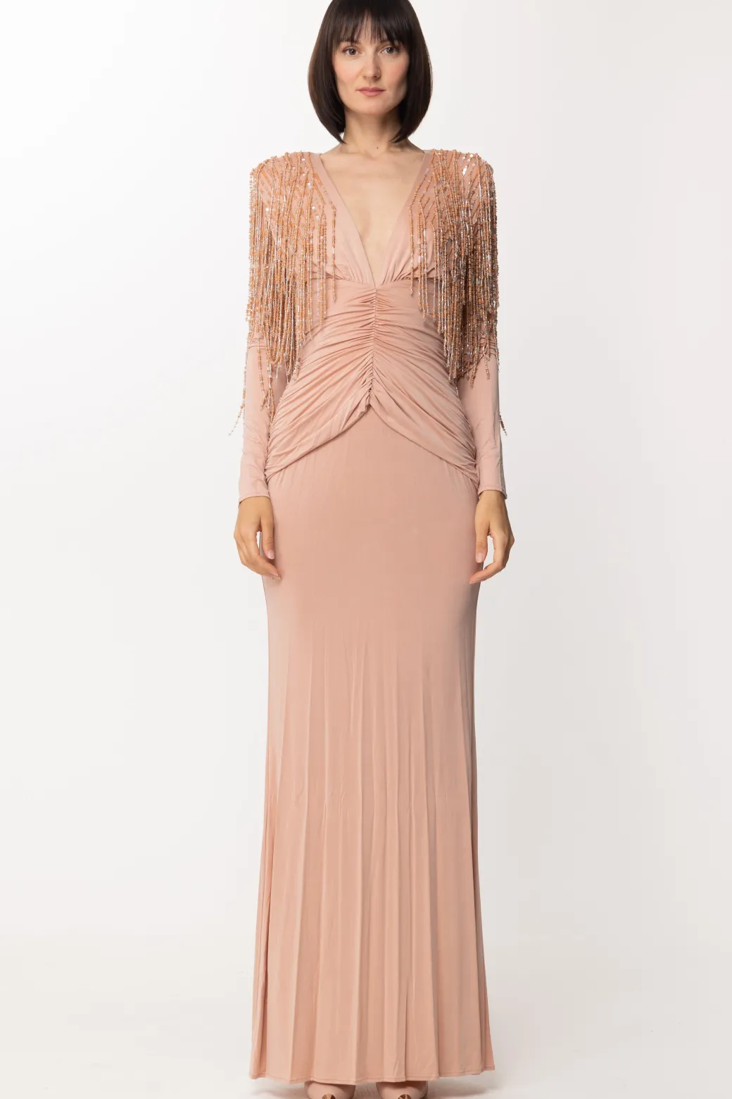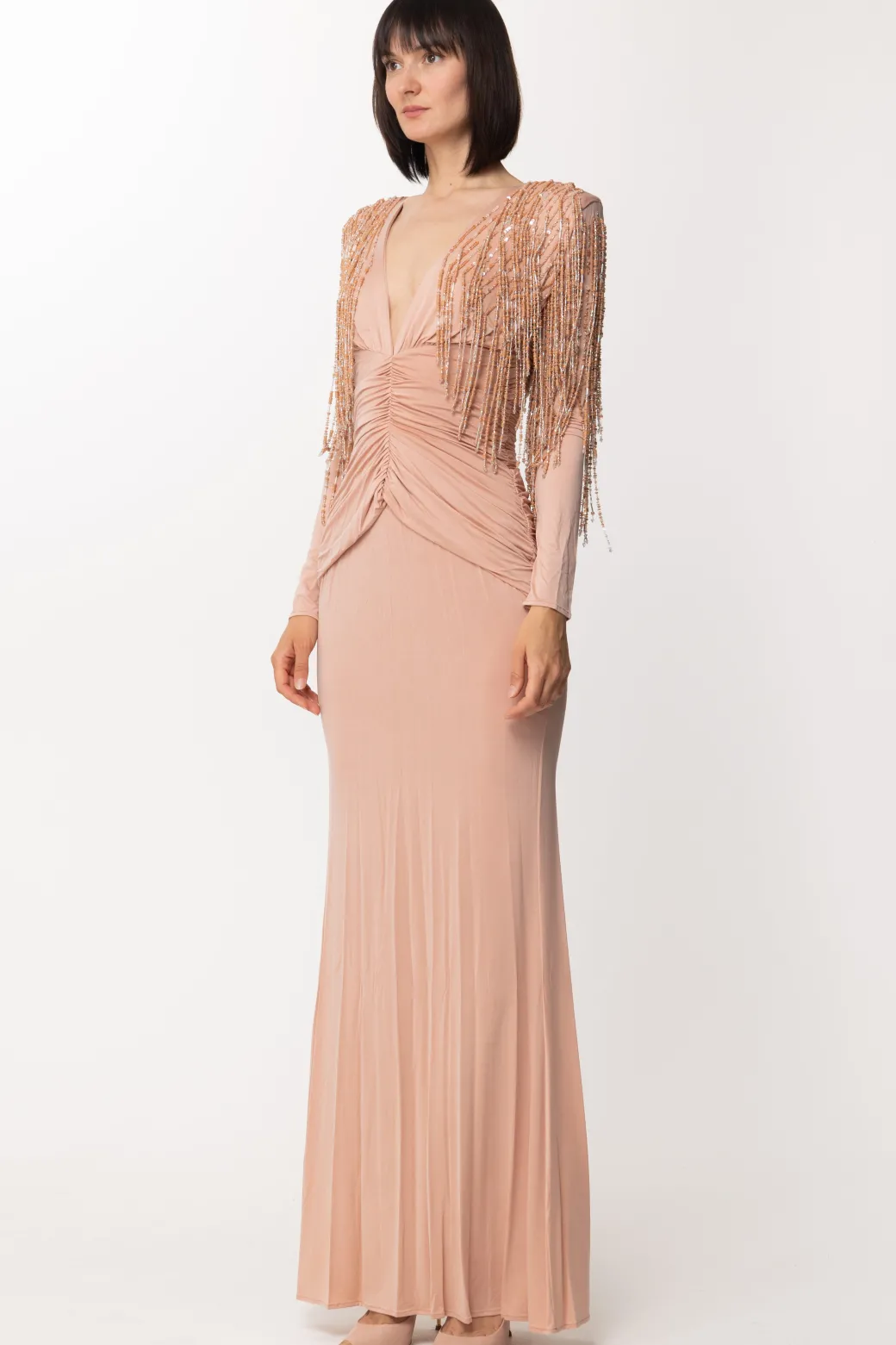 Elisabetta Franchi Abito Red Carpet con Frange Sulle SpalleCARNE