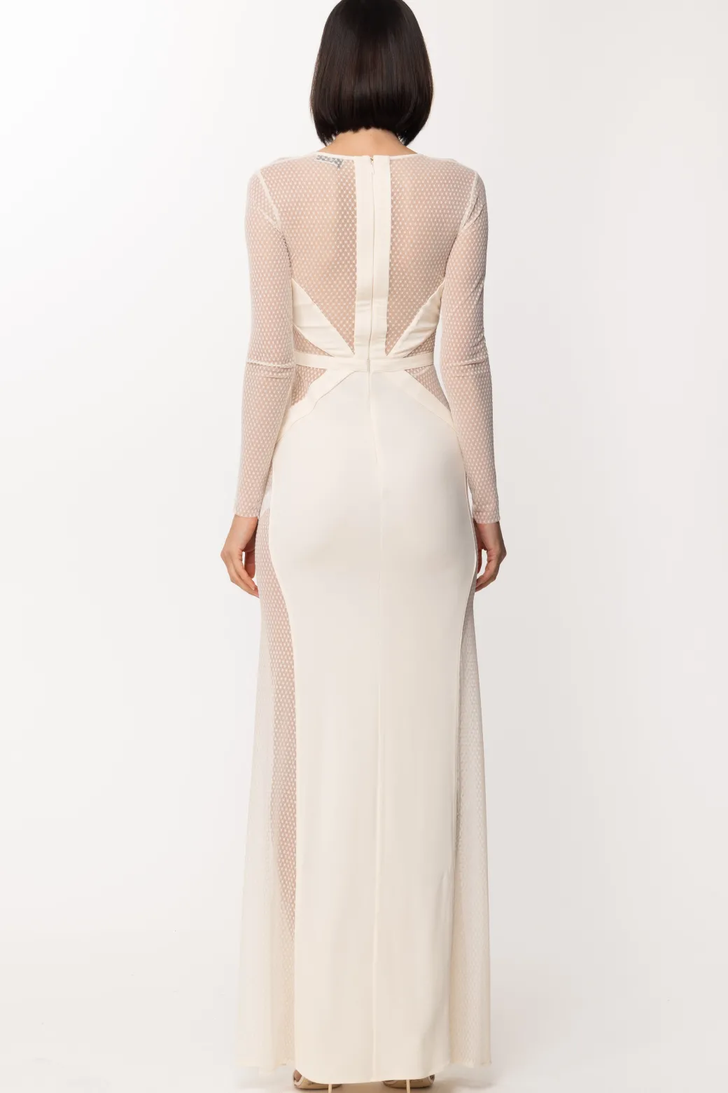 Il cut out di questo abito Red Carpet Elisabetta Franchi è riempito da inserti in tulle in tinta, creando insieme un disegno perfetto sulla tua silhouette: enfatizza i punti giusti ed fascia le tue forme in modo elegante e ricco di charme.