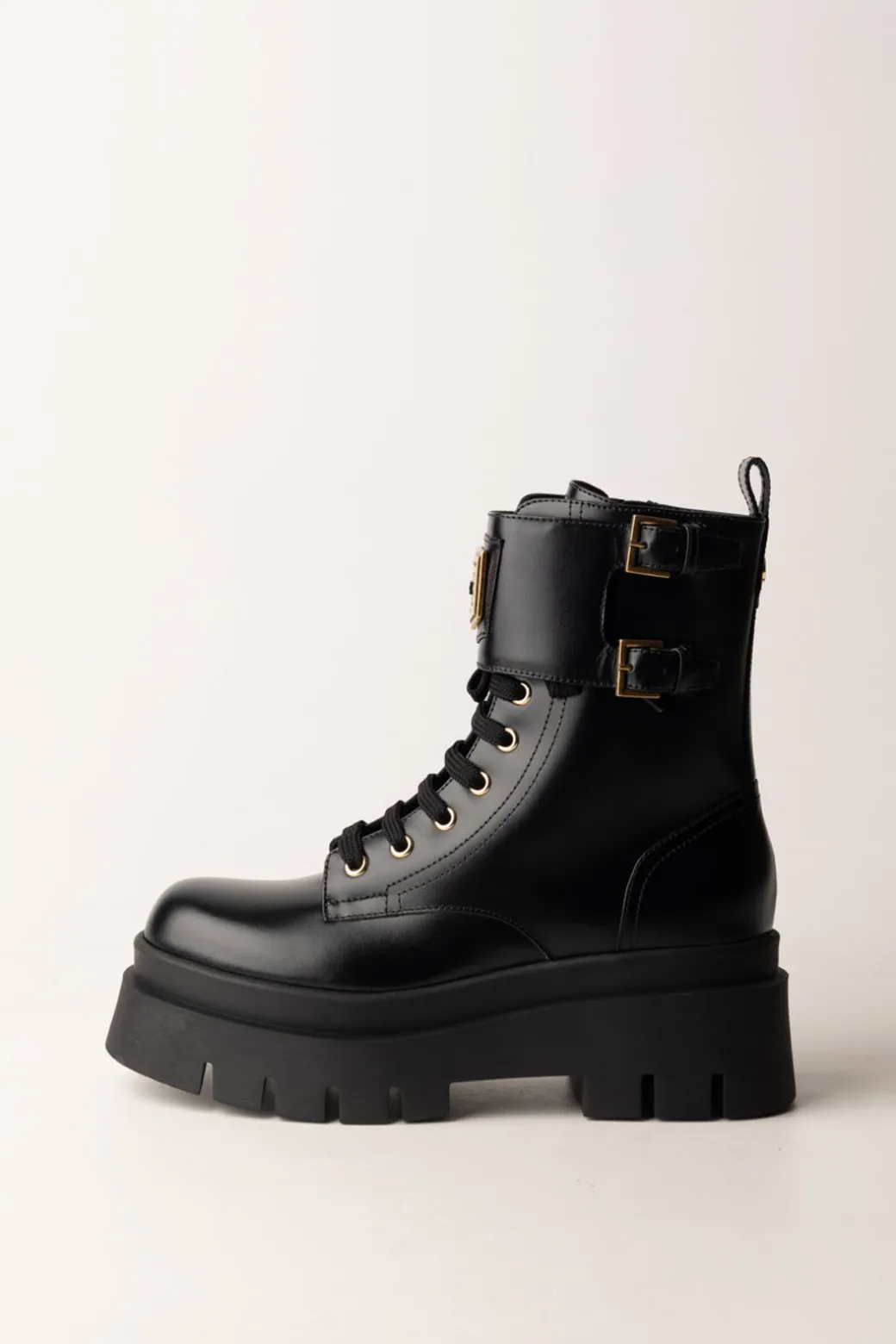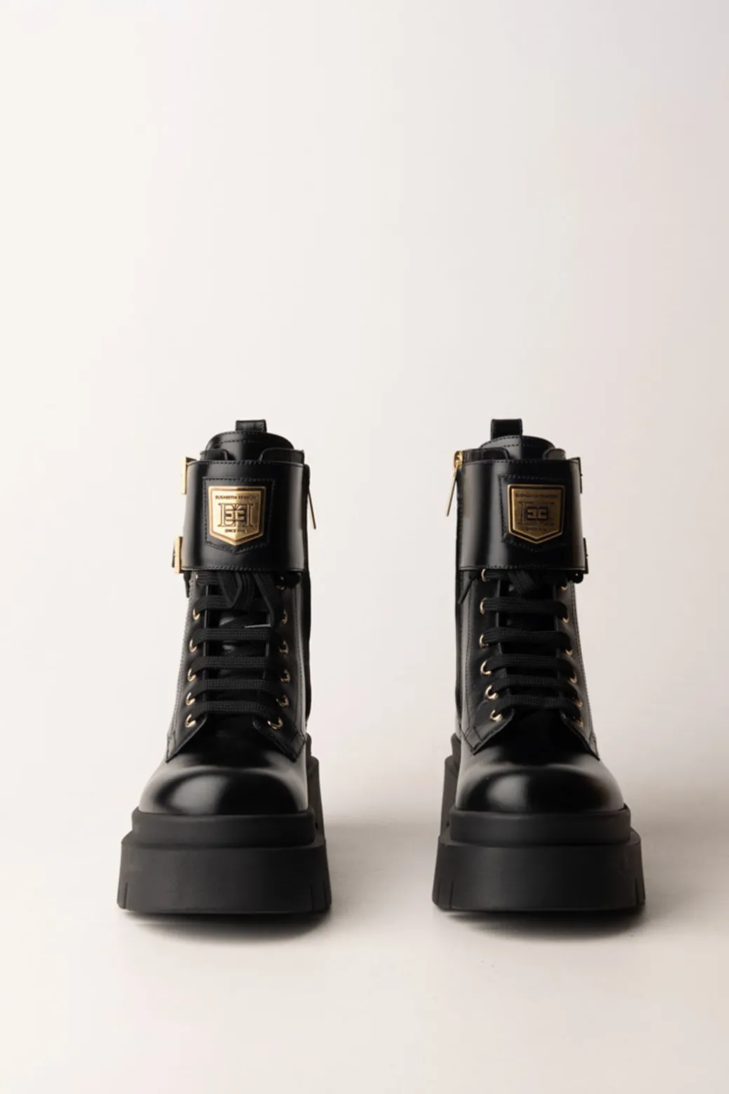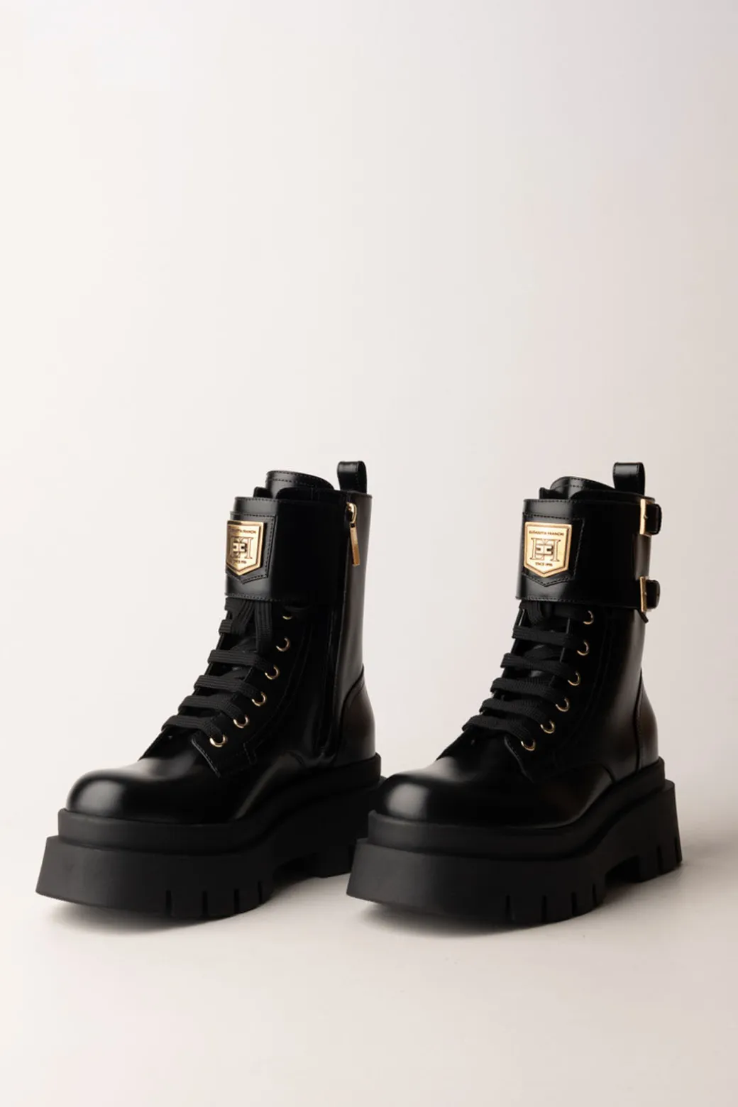 Anfibi Elisabetta Franchi modello chunky dallo stile grintoso, decorati con fibbie dorate e lacci per un tocco di carattere. Perfetti per aggiungere un tocco edgy a qualsiasi look casual, abbinali a jeans o abiti per un contrasto audace.