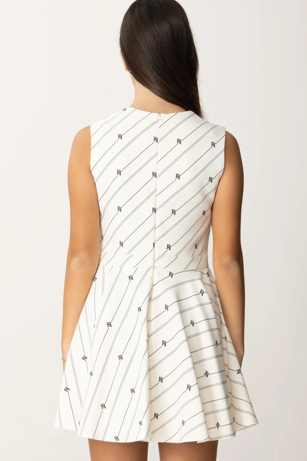 Abito Elisabetta Franchi La mia bambina realizzato in crepe e caratterizzato da un elegante design con gonna svasata e stampa a righe e logo EF, per un risultato estremamente chic. Smanicato, combinalo con una camicetta o una maglia dolcevita per outfit che vadano bene per tutta la stagione e completa il look con una delle calzature del brand per un look rifinito in ogni dettaglio, in pieno stile EF.
