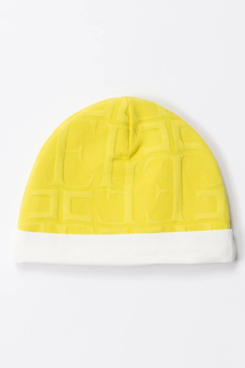 Cappello in felpa Elisabetta Franchi La mia Bambina caratterizzato da pattern embossed con logo e orlo a contrasto: un simpatico accessorio da abbinare ad altri pezzi per creare un delizioso set, dalle coperte al sacco nanna.
