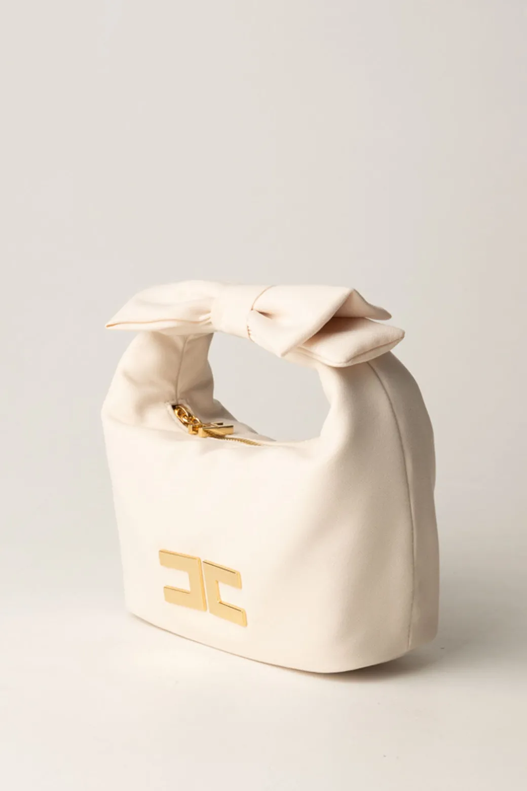 Una borsa a mano Elisabetta Franchi La mia Bambina per completare al meglio i suoi outfit più eleganti: una raffinata borsetta stondata, illuminata dal loco CC in placca oro, con un particolare manico a fiocco che è un vero tocco chic. La amerà tanto quanto te!