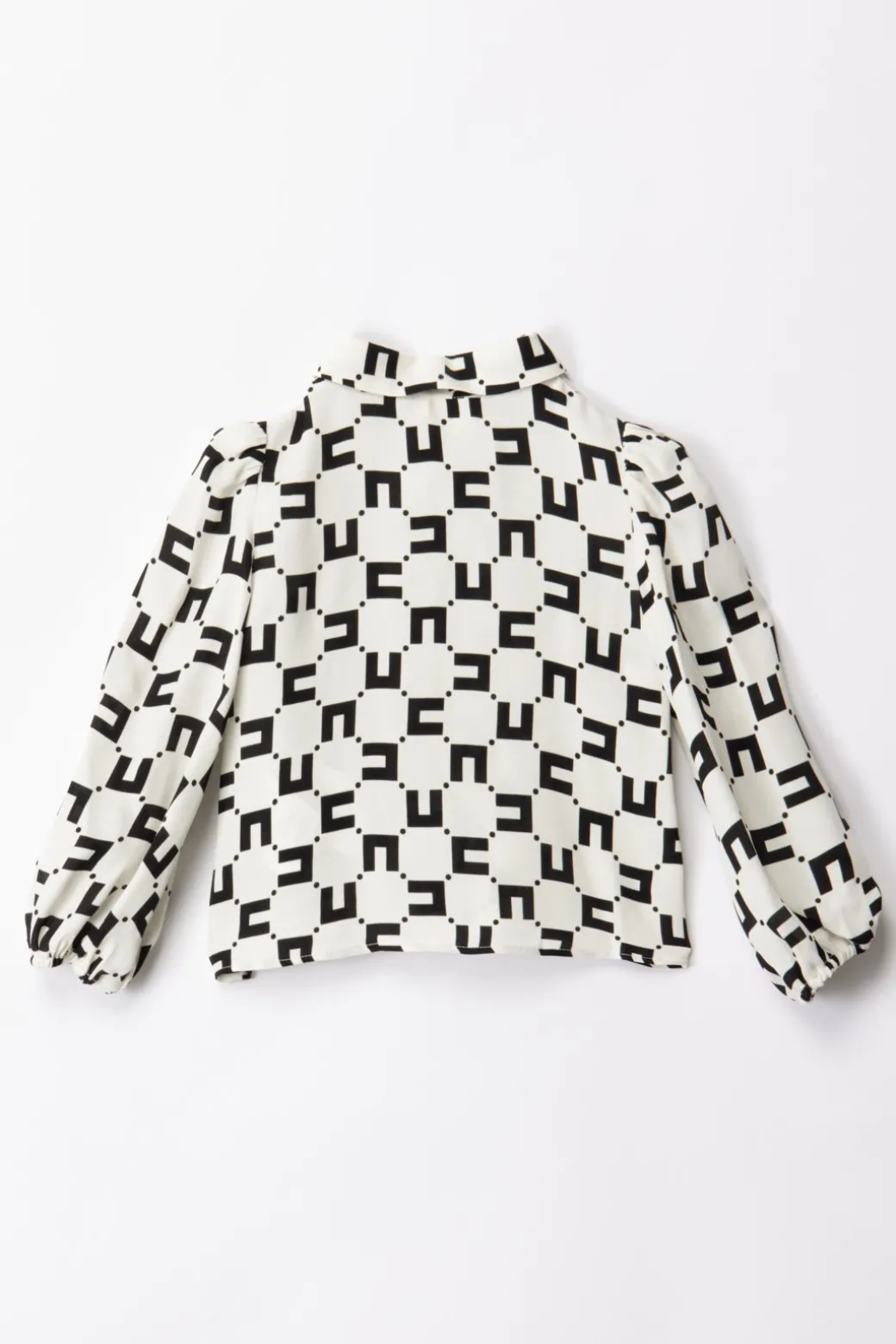 Versatile camicia Elisabetta Franchi La mia Bambina che, nonostante la sua allure ladylike data dalla manica a palloncino e il bottoncino dorato al colletto, sarà facile da combinare a tanti bottom della baby-collezione, dai jeans ai leggings. Vestibilità comoda in leggera viscosa, la stampa logo cubico è un vero must di stagione!