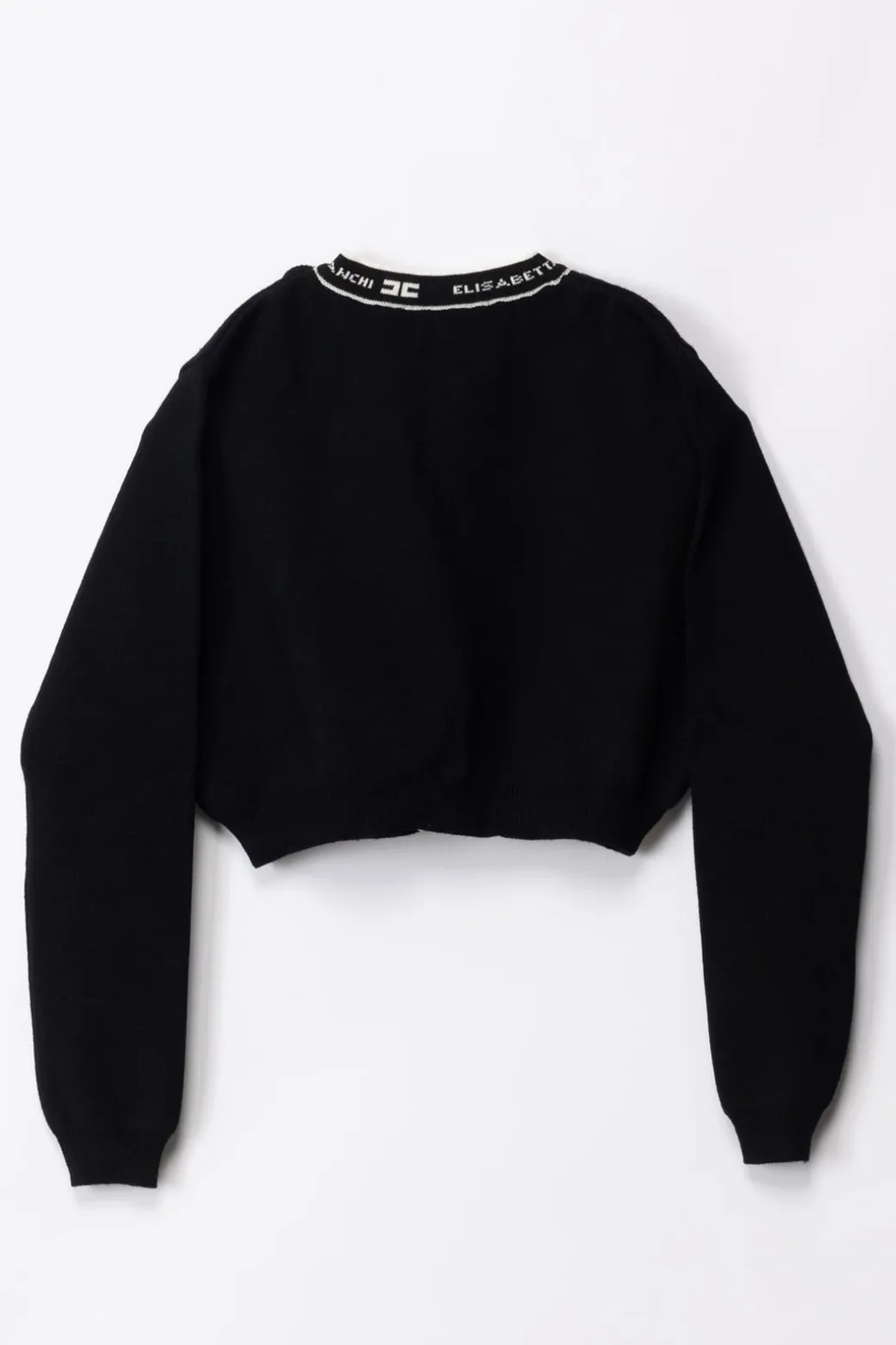 Cardigan Elisabetta Franchi La mia Bambina caratterizzato da una banda logata a contrasto che percorre i profili e il girocollo, creando un richiamo con altri pezzi della collezione baby. Un capo versatile, che si adatta facilmente a look eleganti quanto casual: una risorsa per tutta la stagione!